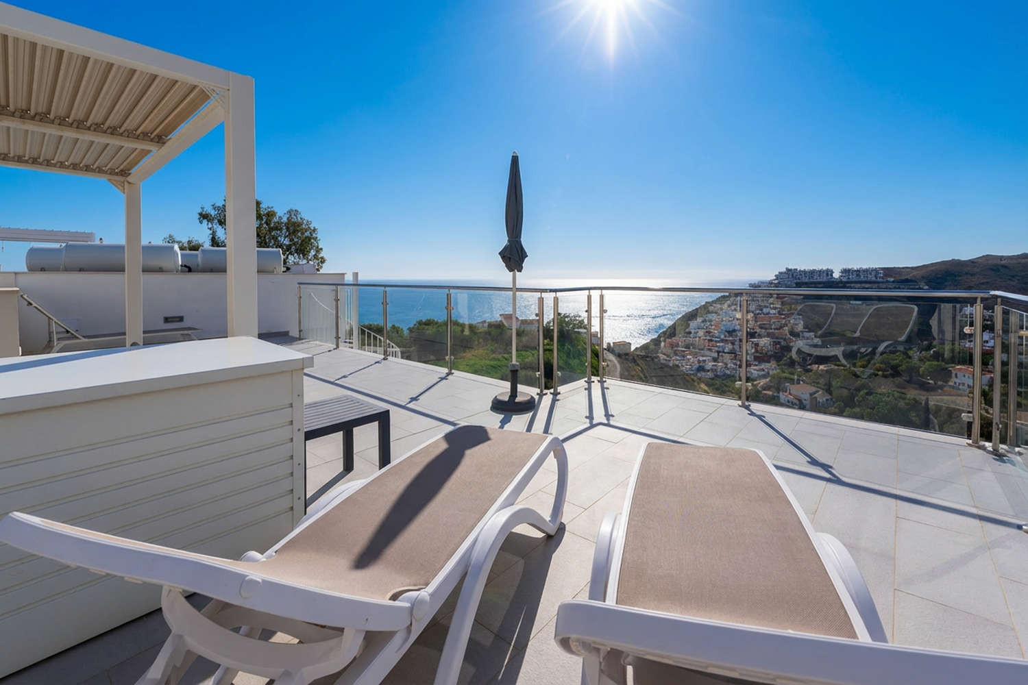 Very modern penthouse with spectacular sea views and a large terrace with lounge area and outdoor shower. Perfectly communicated with the nearby towns of Torrox Costa and Nerja, in the heart of the eastern coast of Malaga in the new Balcón del Mar complex.