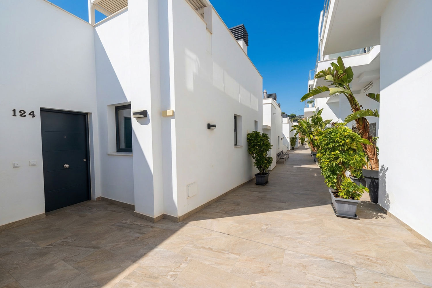 Only 200 meters from the apartment, there is a supermarket, several bars and restaurants, a large communal pool with children's area and stunning views towards the sea and the mountains.