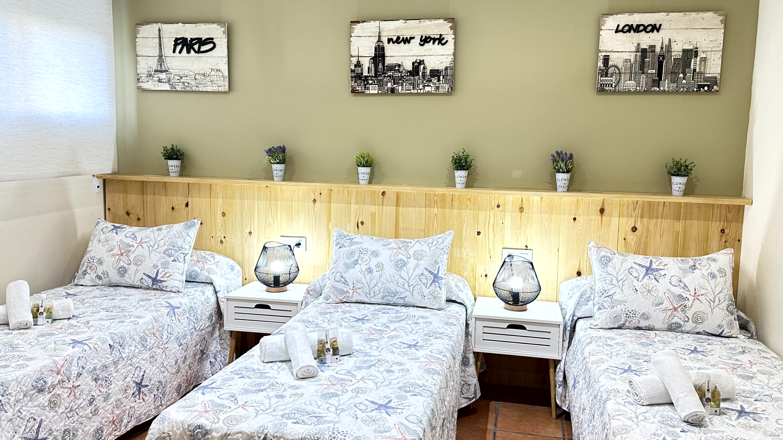 Ground Floor: a triple bedroom, with three single beds, a full bathroom with shower and closed garage inside the dwelling.