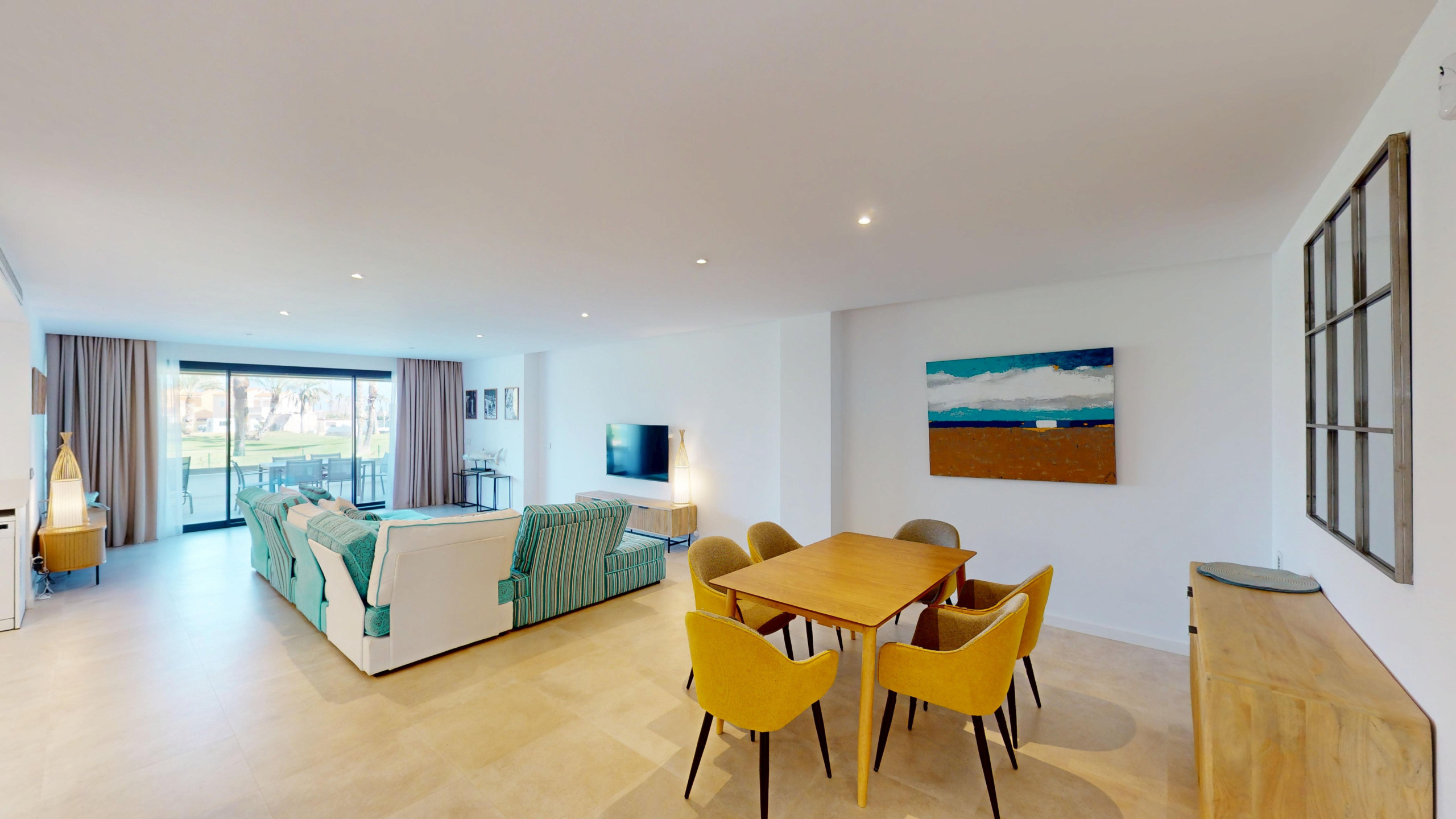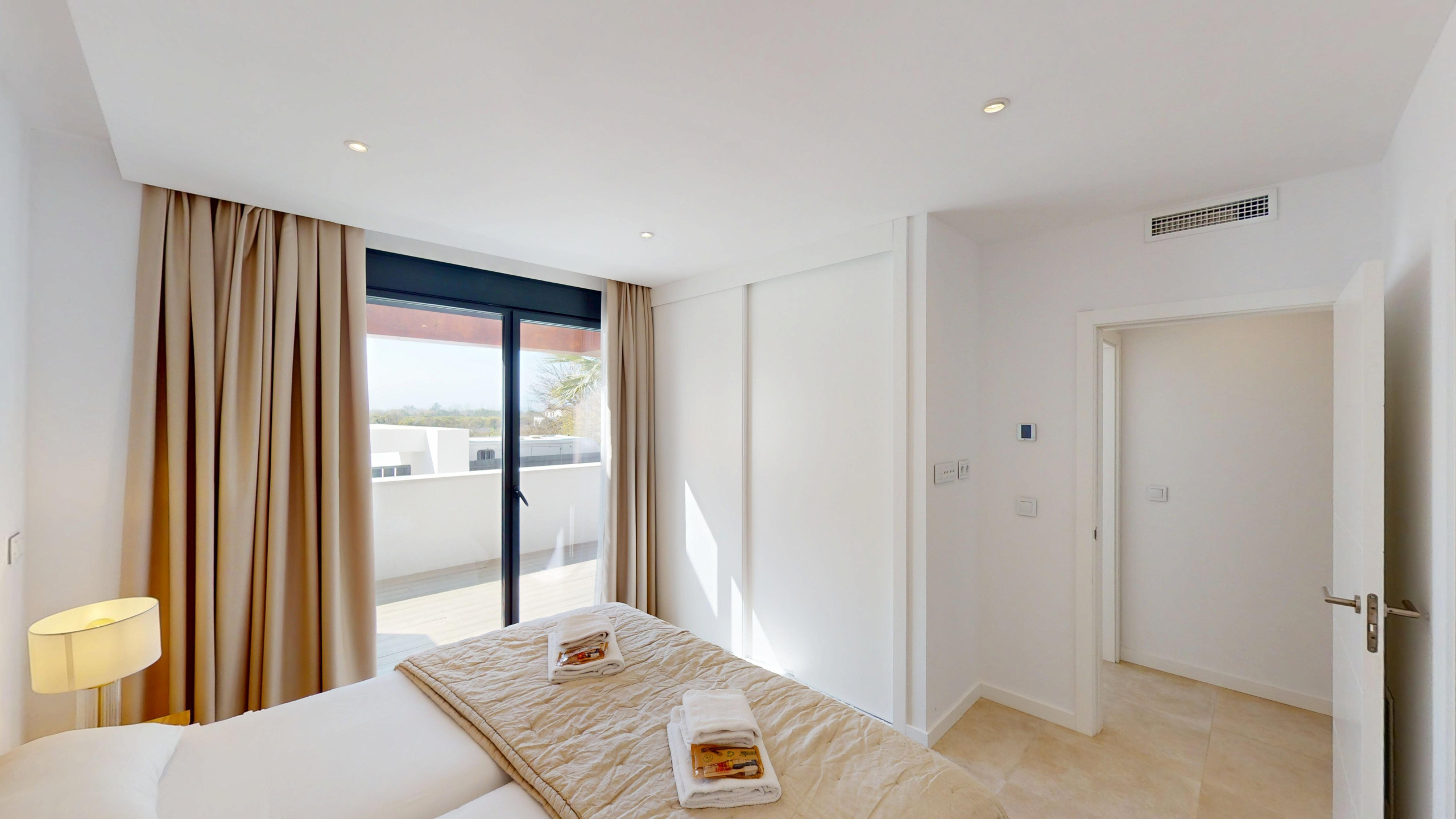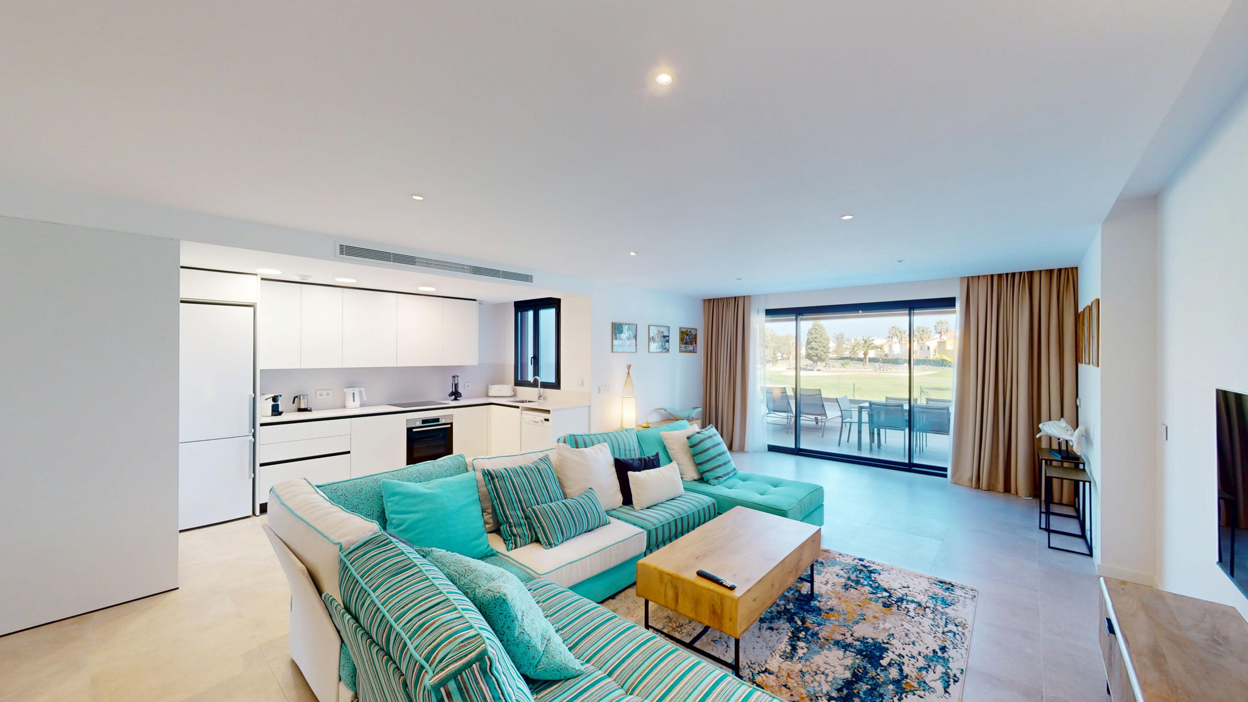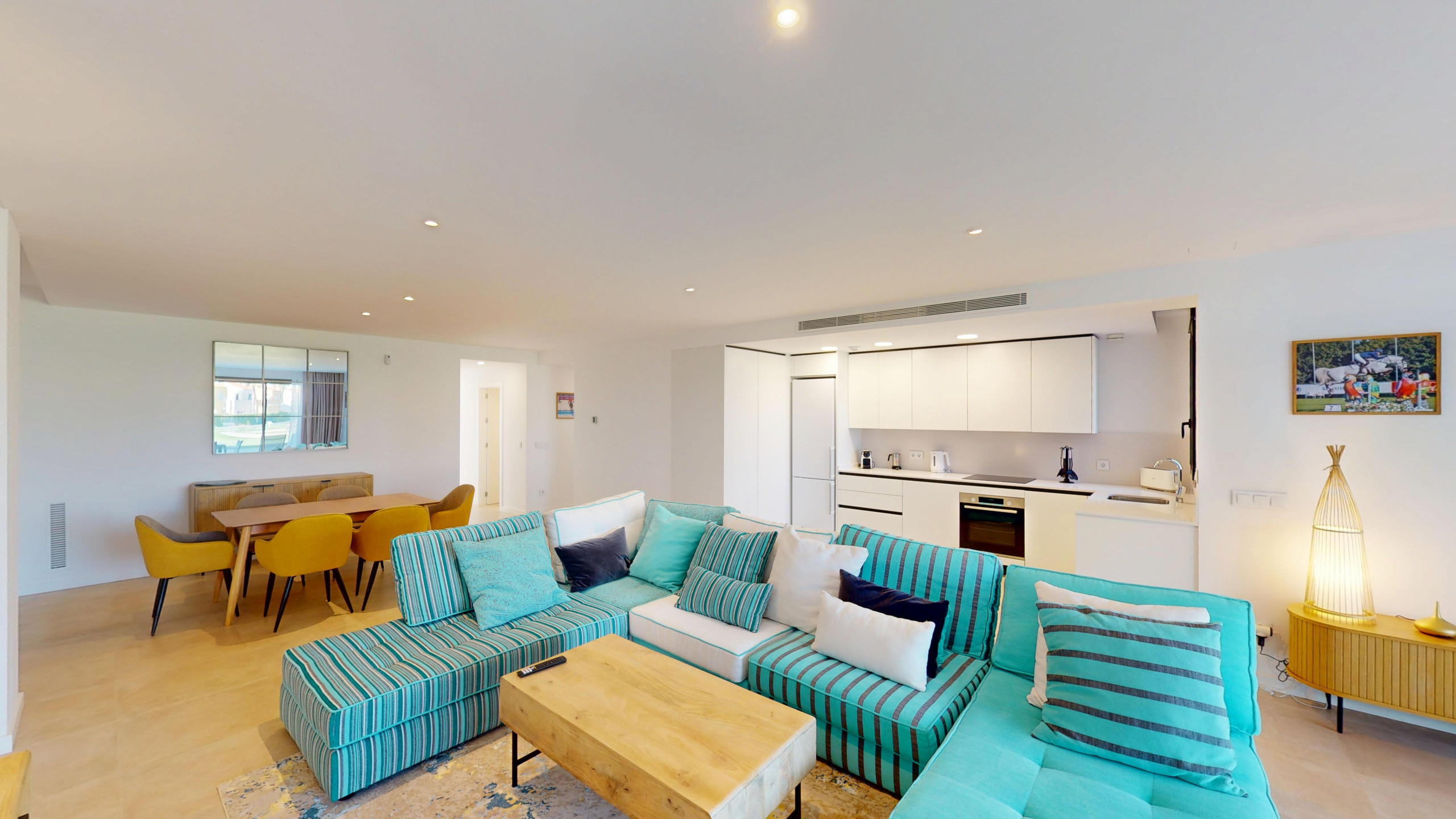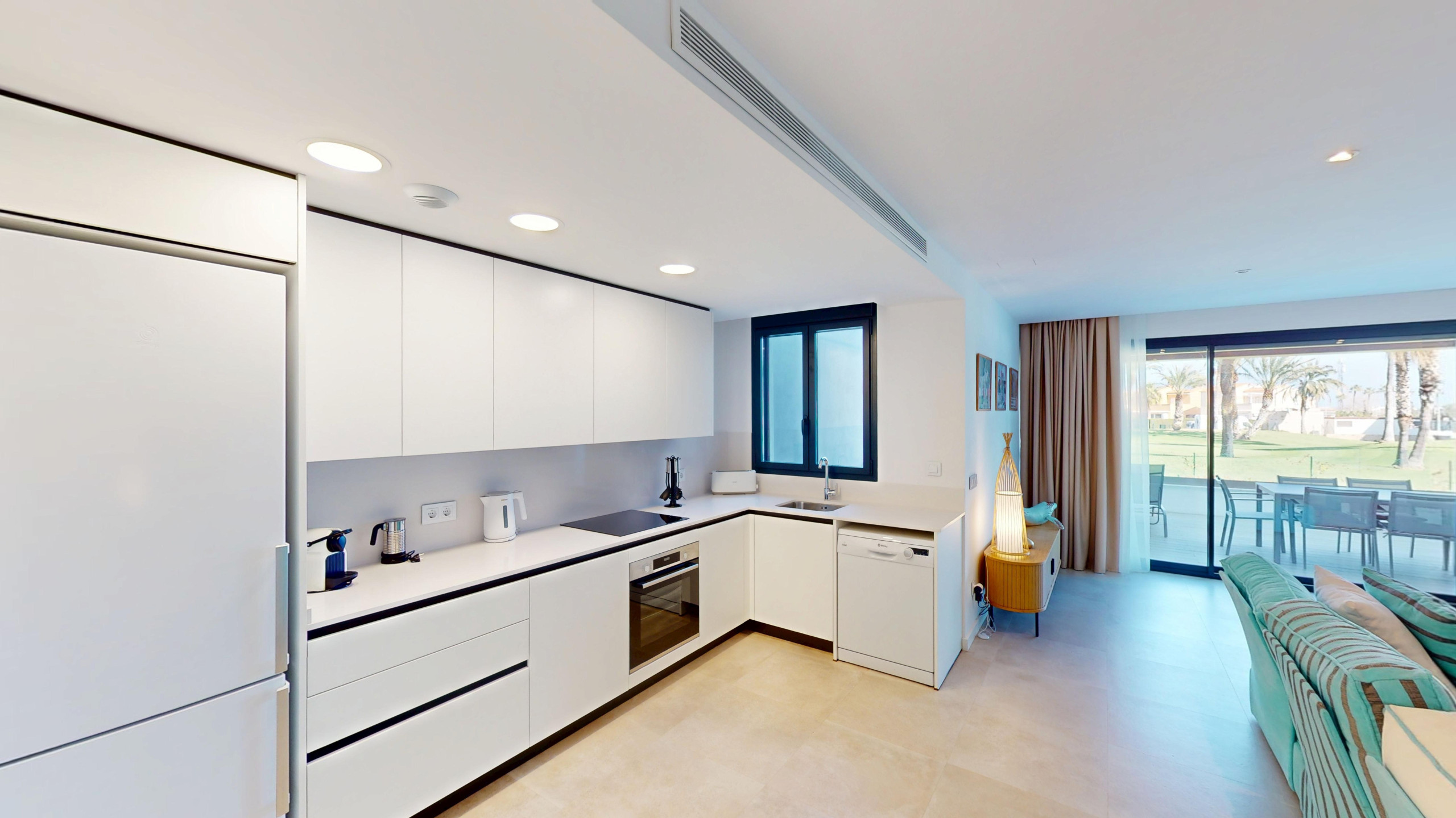 The apartment has 2 bedrooms and 2 bathrooms. It has a fully equipped open-plan kitchen with state-of-the-art appliances such as a fridge, freezer, washing machine, coffee maker, oven and dishwasher. You can also enjoy a pleasant 32 m2 terrace with views of the mountains and the golf course.