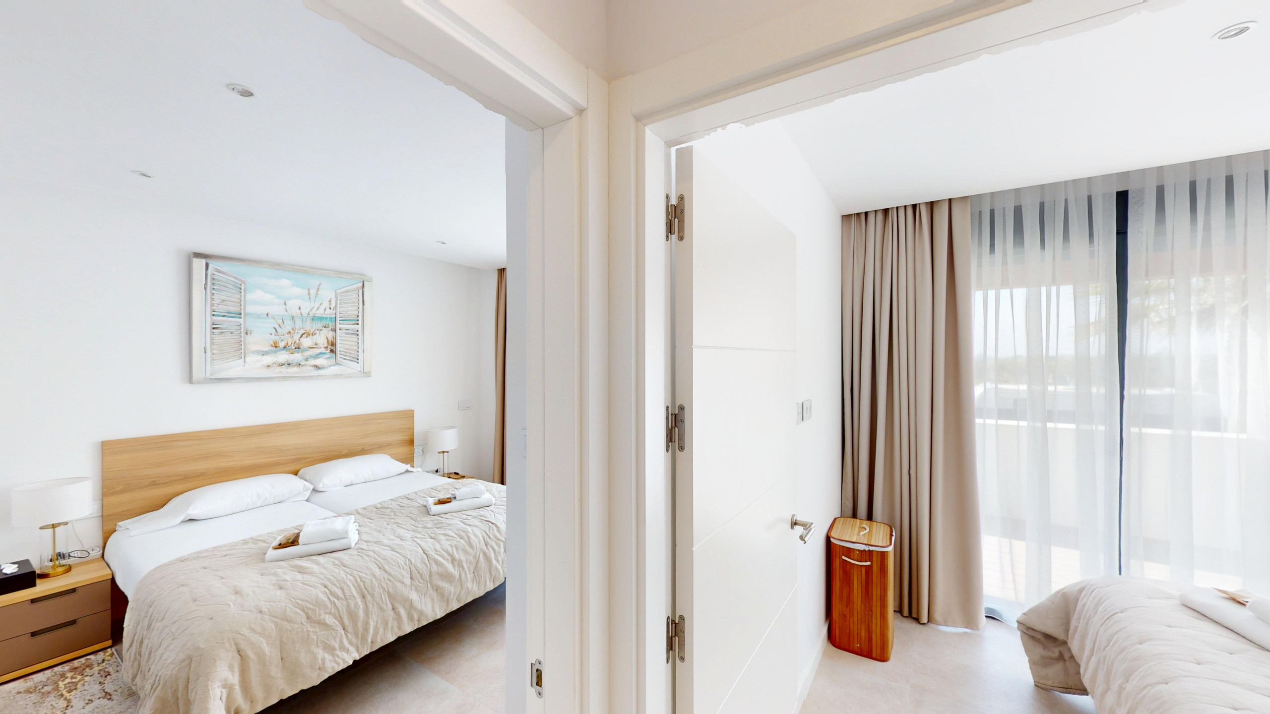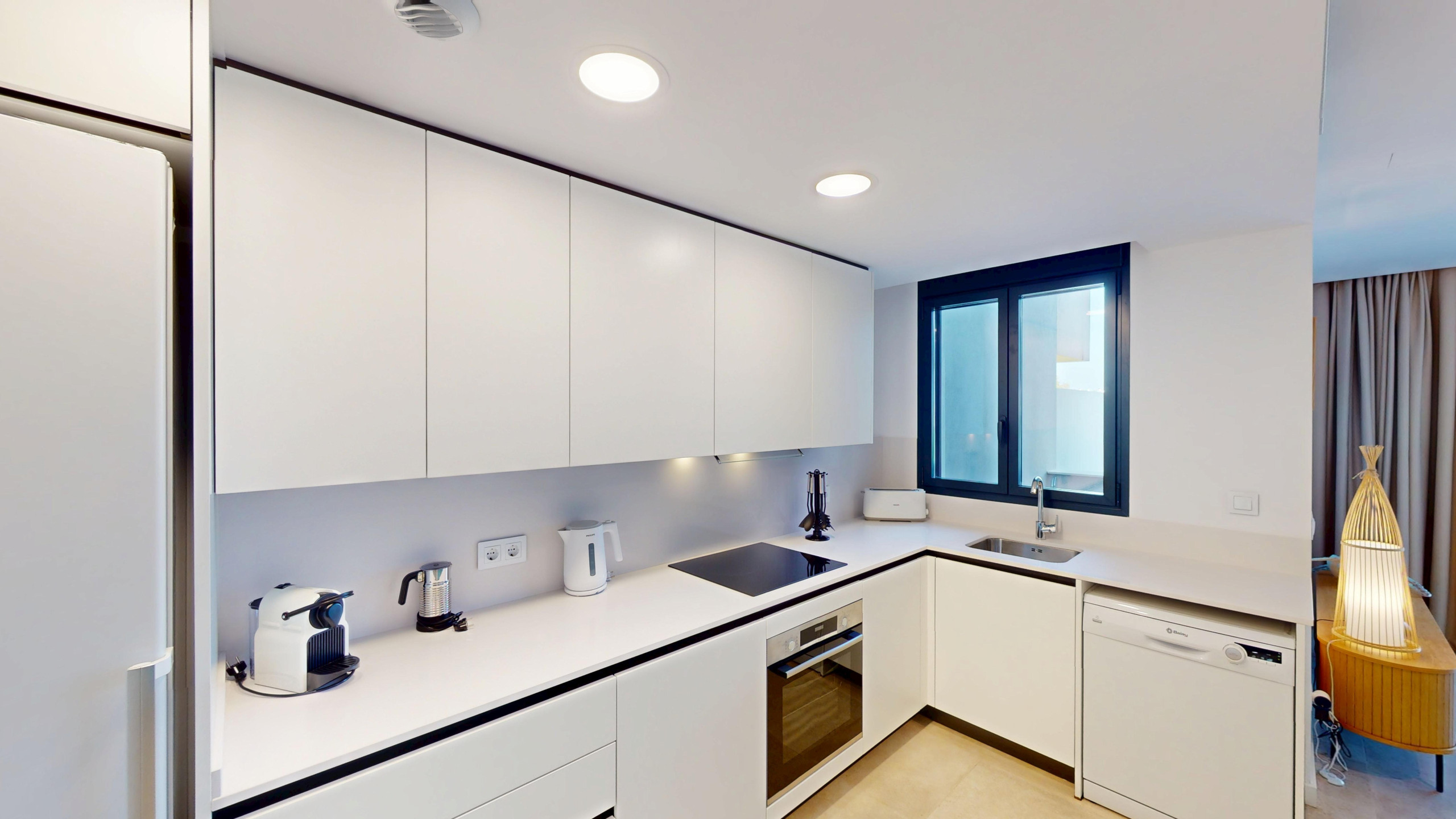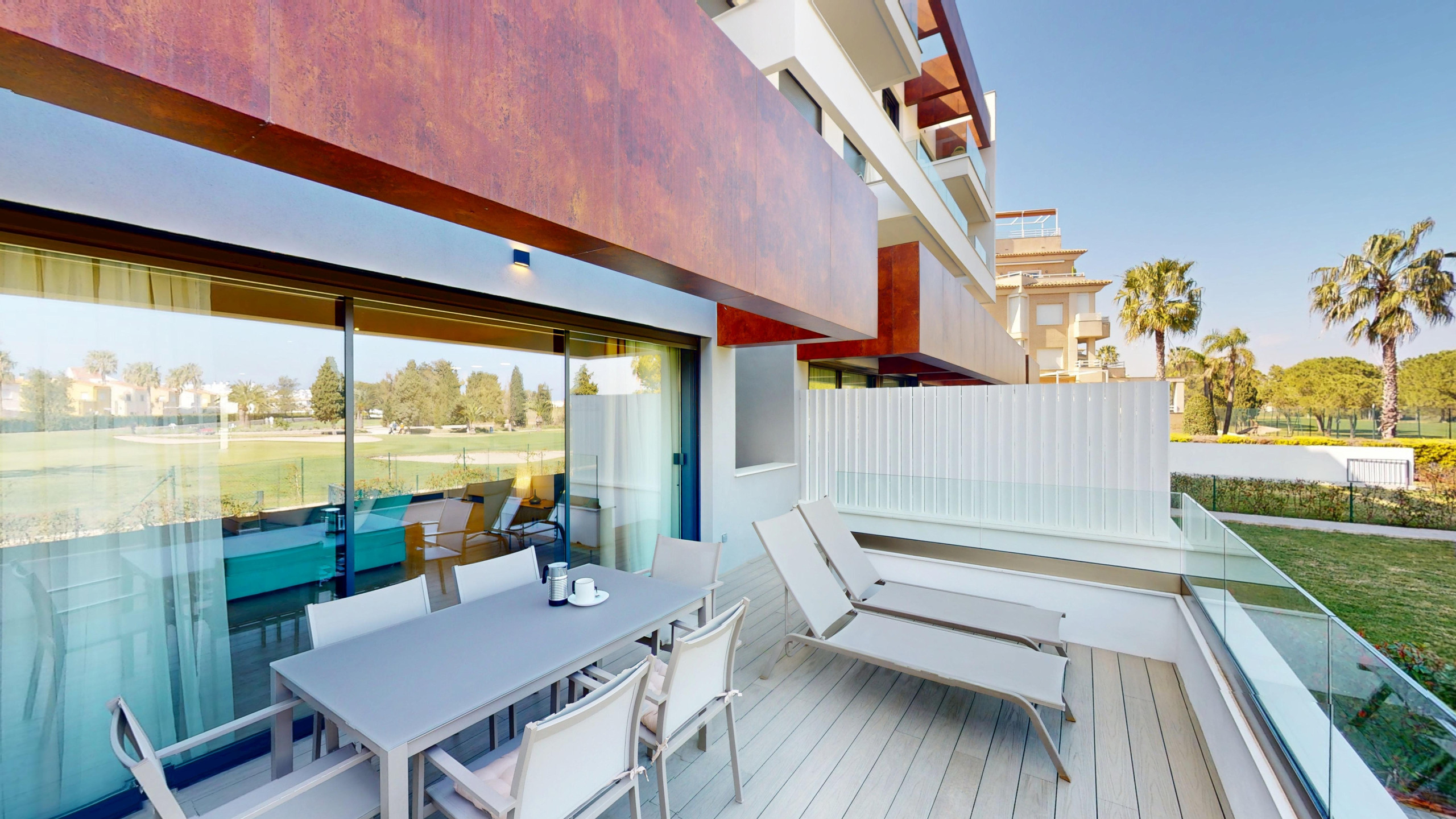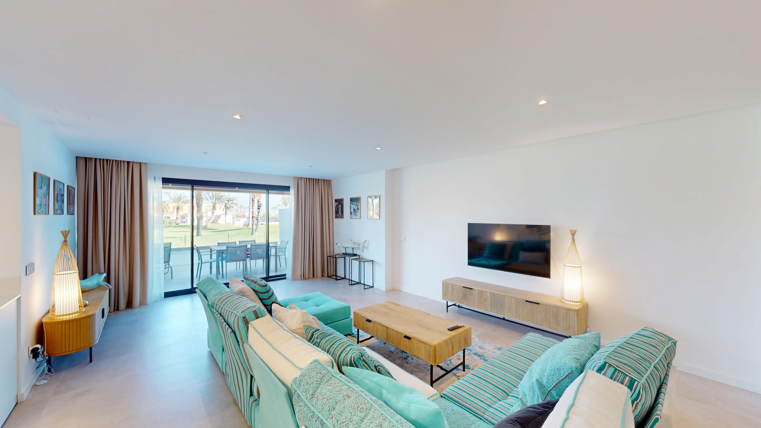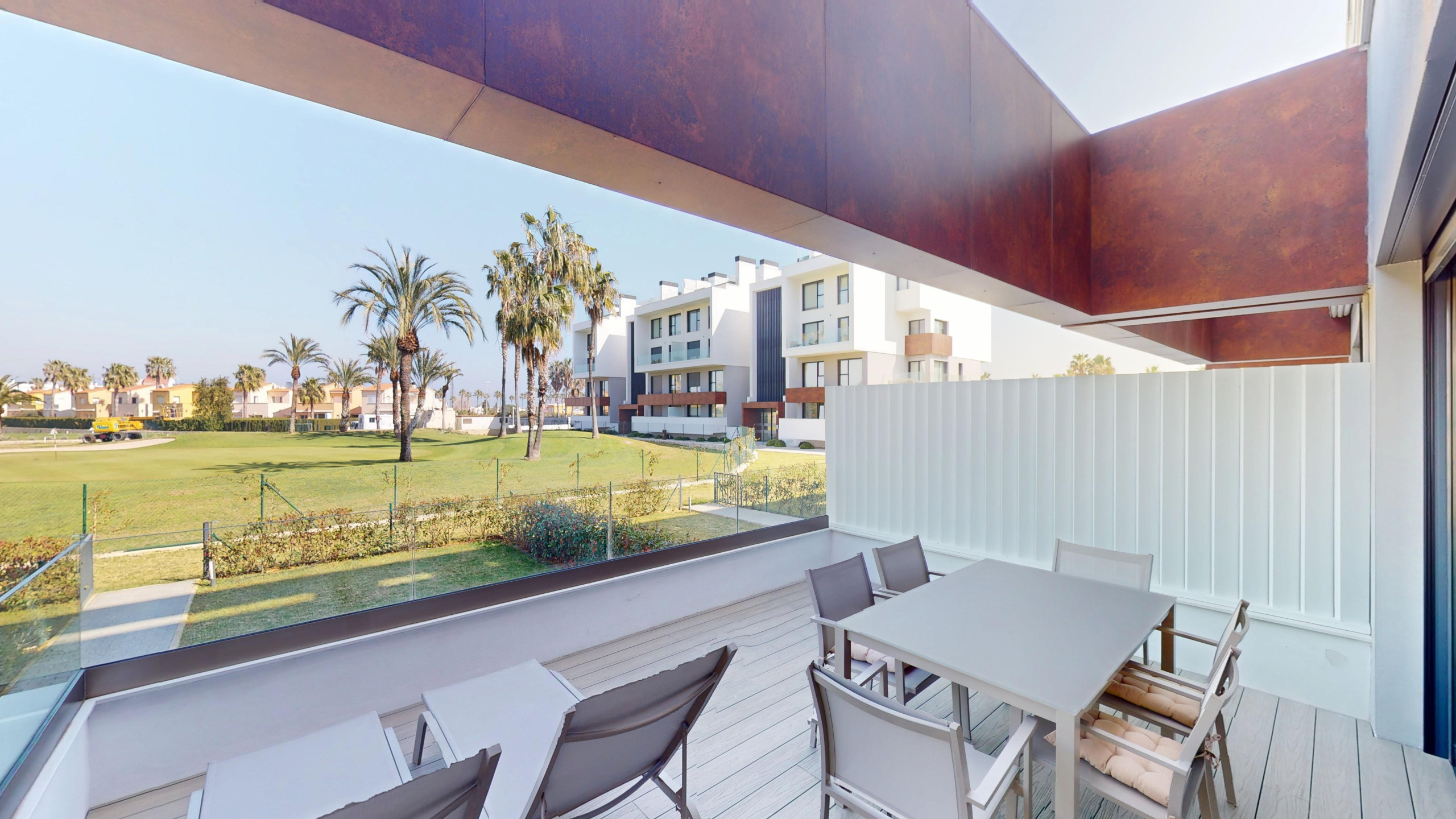 The apartment has 2 bedrooms and 2 bathrooms. It has a fully equipped open-plan kitchen with state-of-the-art appliances such as a fridge, freezer, washing machine, coffee maker, oven and dishwasher. You can also enjoy a pleasant 32 m2 terrace with views of the mountains and the golf course.