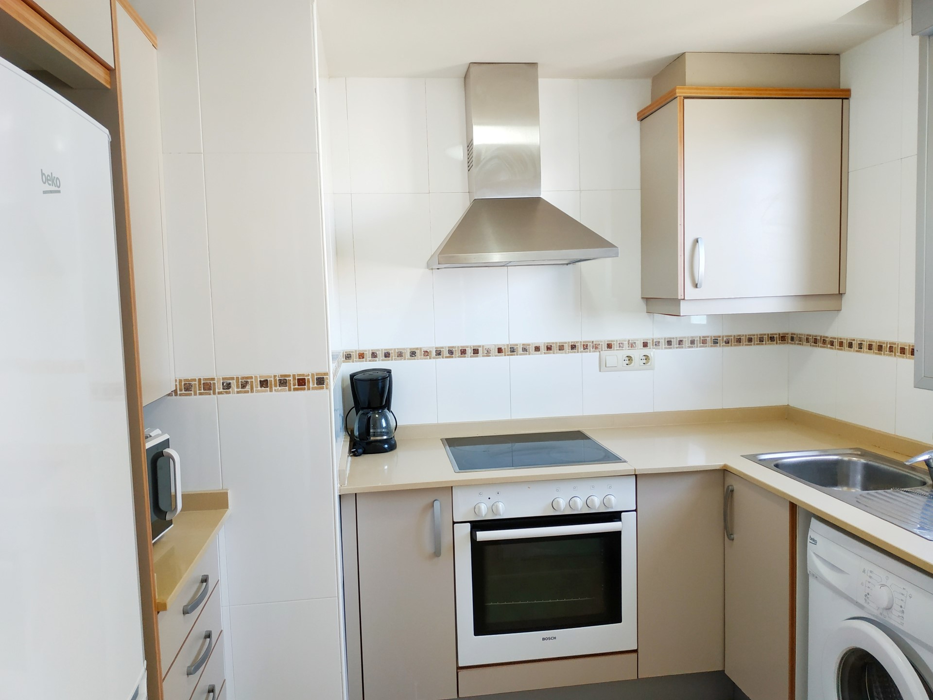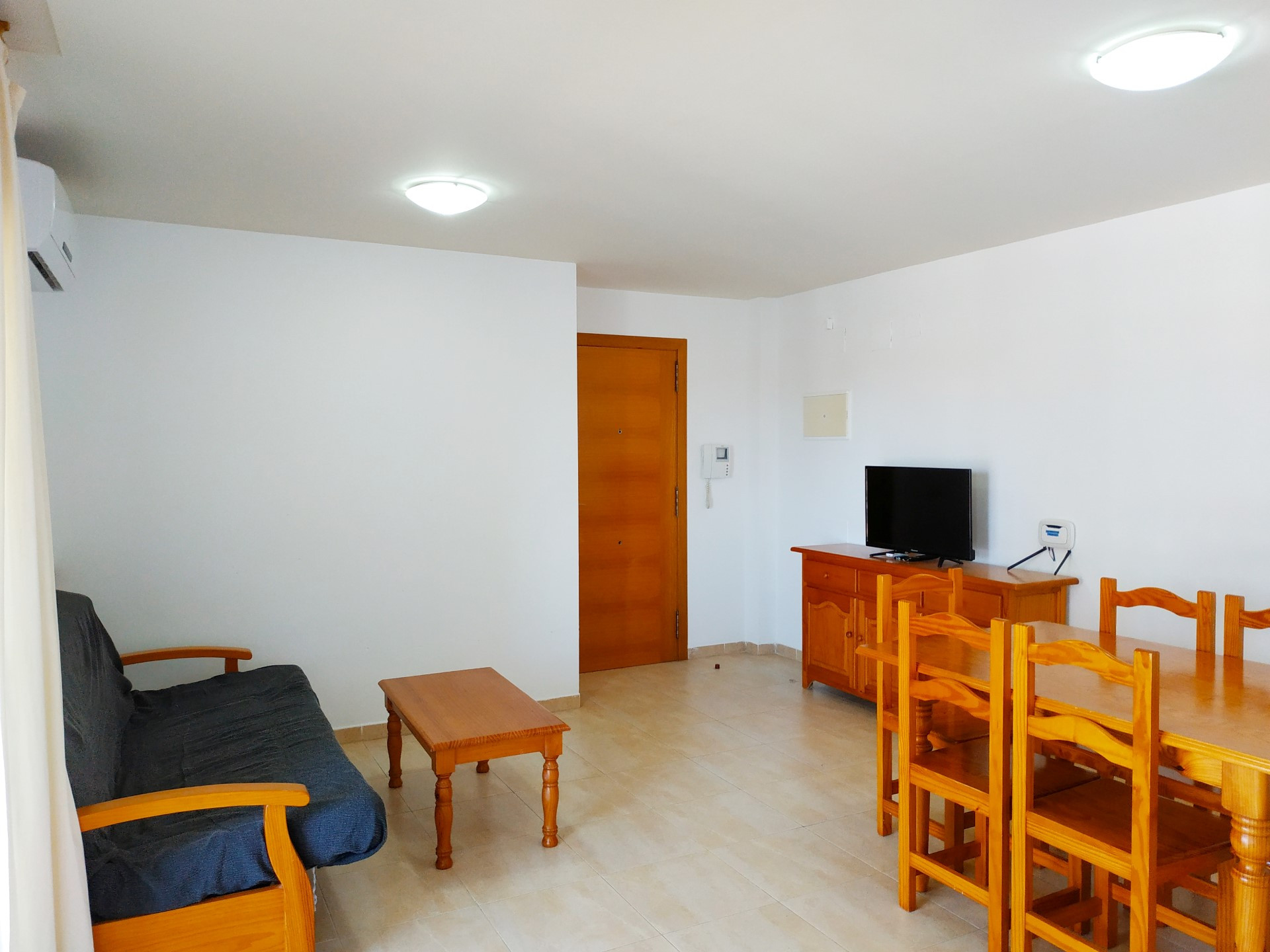 The apartment on Avd. Papa Luna 115 de Peñiscola 12598, has 1 bedroom (s) and has capacity for 5 people. Comfortable 45 m² accommodation. It is located 80 m from the restaurant “Arroceria Polo Sur”, 100 m from the sandy beach “Playa Norte”, 200 m from the bus station “Parada Interurban”, 1 km from the supermarket “Spar”, 1 km from the water park “Aqualandia”, 3 km from the city “Peñiscola”, 5 km from the rock beach “Raco Calent”, 6 km from the train station “Benicarlo/Peñiscola”, 7 km from the natural park “Parque Natural de la Sierra de Irta”, 50 km from the golf course Overview”, 50 km from “Castellon” airport, 100 km from the “Port Aventura” amusement park, 150 km from the international airport” Manises (Valencia)” and is located in a quiet area next to the sea. It has an elevator, terrace, washing machine, iron, 2 fans, 1 TV. The American kitchen, with ceramic glass, is equipped with a fridge, microwave, oven, freezer, dishes/cutlery, kitchen utensils and coffee maker.