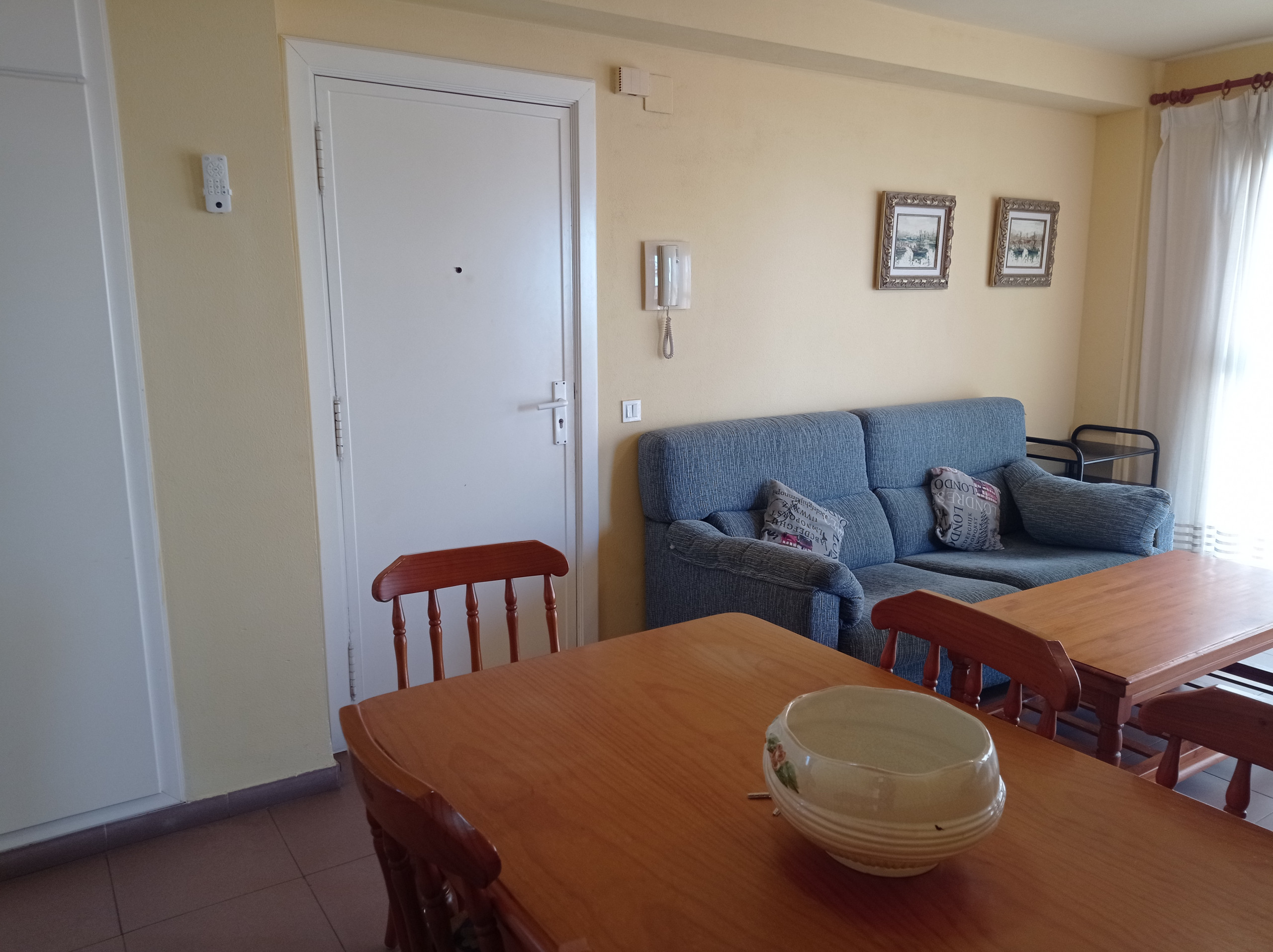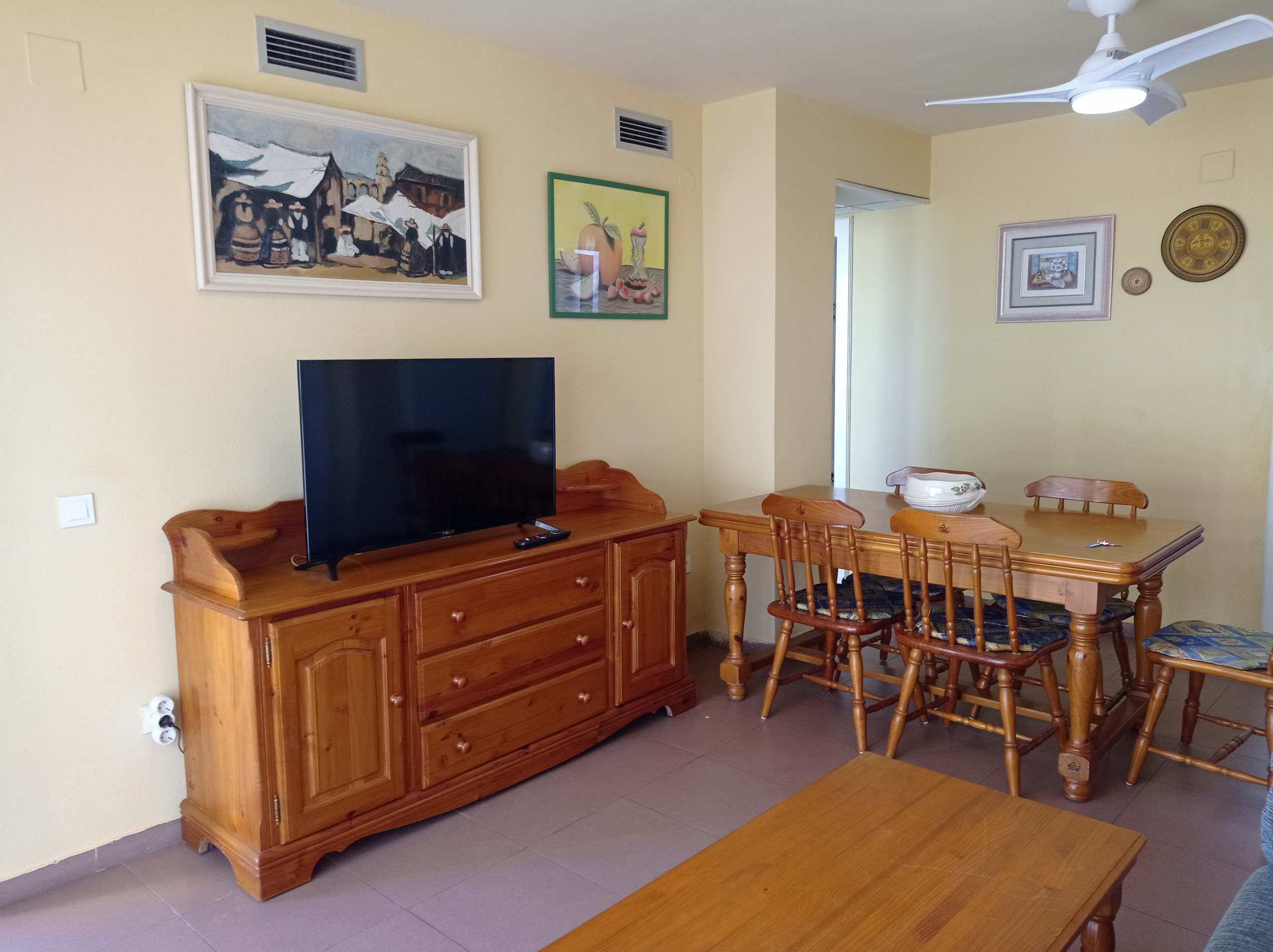 Cosy apartment on the first line of Gandia Beach. Third floor with lift. Fresh north-facing terrace with fabulous views of the promenade, the beach and the sea. Two double bedrooms with built-in wardrobes, two bathrooms with bathtub, spacious and independent kitchen and living-dining room. Includes WIFI service. It has ceiling fans in both bedrooms and in the living-dining room.