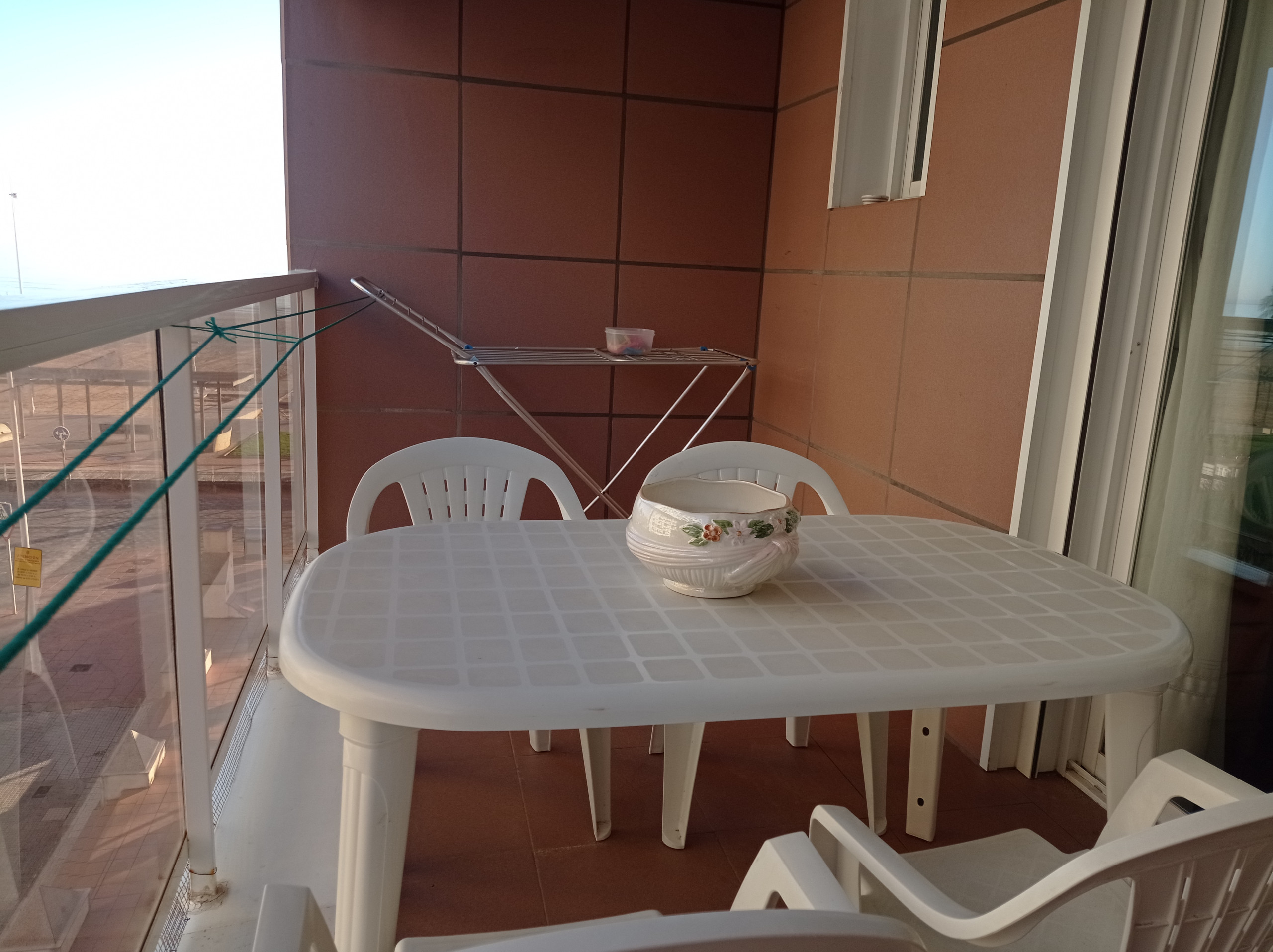 Marvellous studio apartment on the first line of Gandia Beach, located on the 2nd floor with FABULOUS sea and beach views. Cool apartment with East-Northeast orientation, as well as the terrace. It has a double bedroom with built-in wardrobes, a practical hallway bathroom, spacious kitchen leading to the living-dining room, equipped with a sofa bed (120 cm wide), ideal for families with small children!