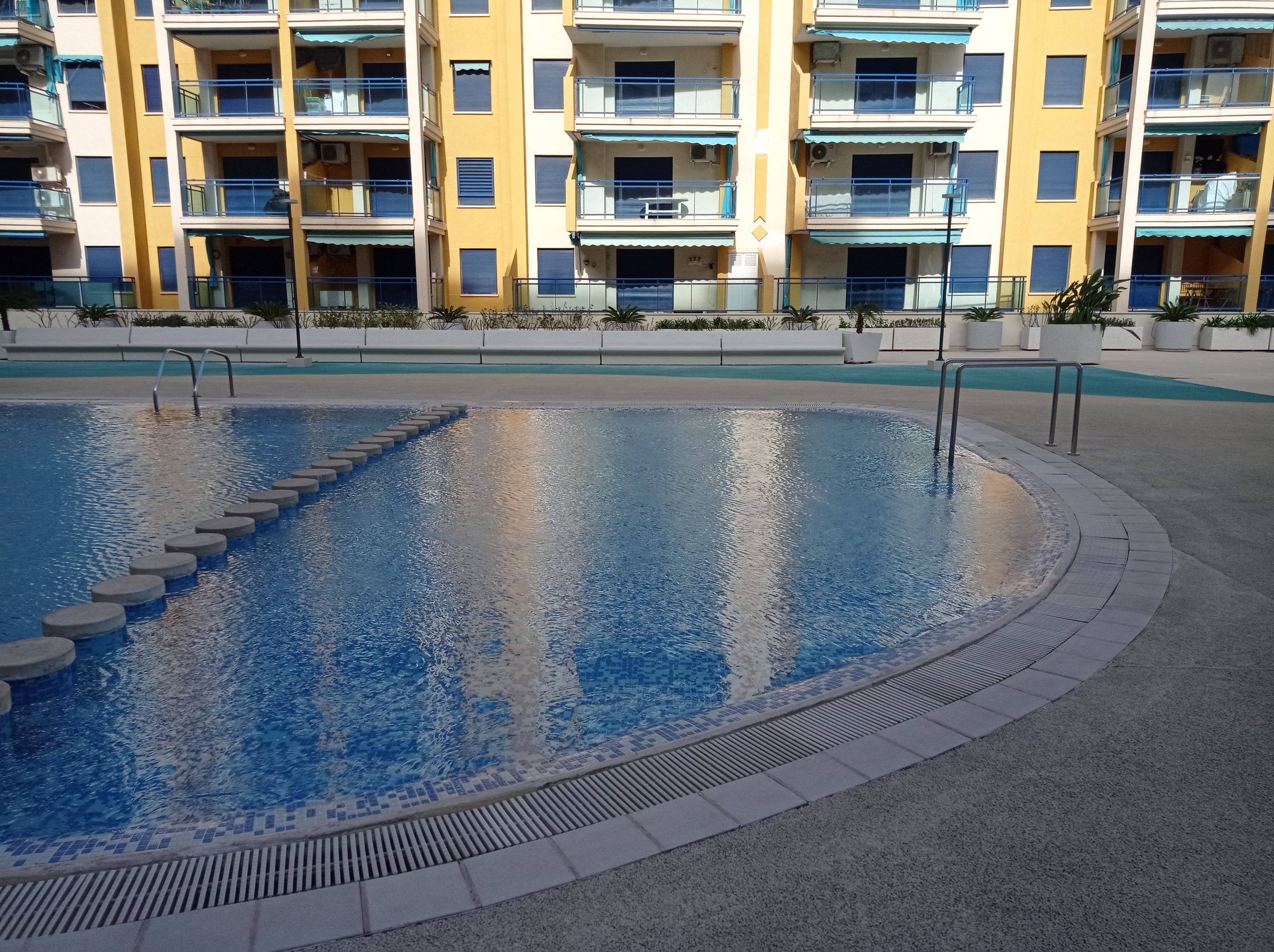The building has a communal swimming pool with a cordoned children's pool, common areas with swings and tennis court. It is located on the first line of Gandia Beach, a step away from the port, between the Riviera hotel and the San Luis hotel. In its surroundings, there are all types of services.