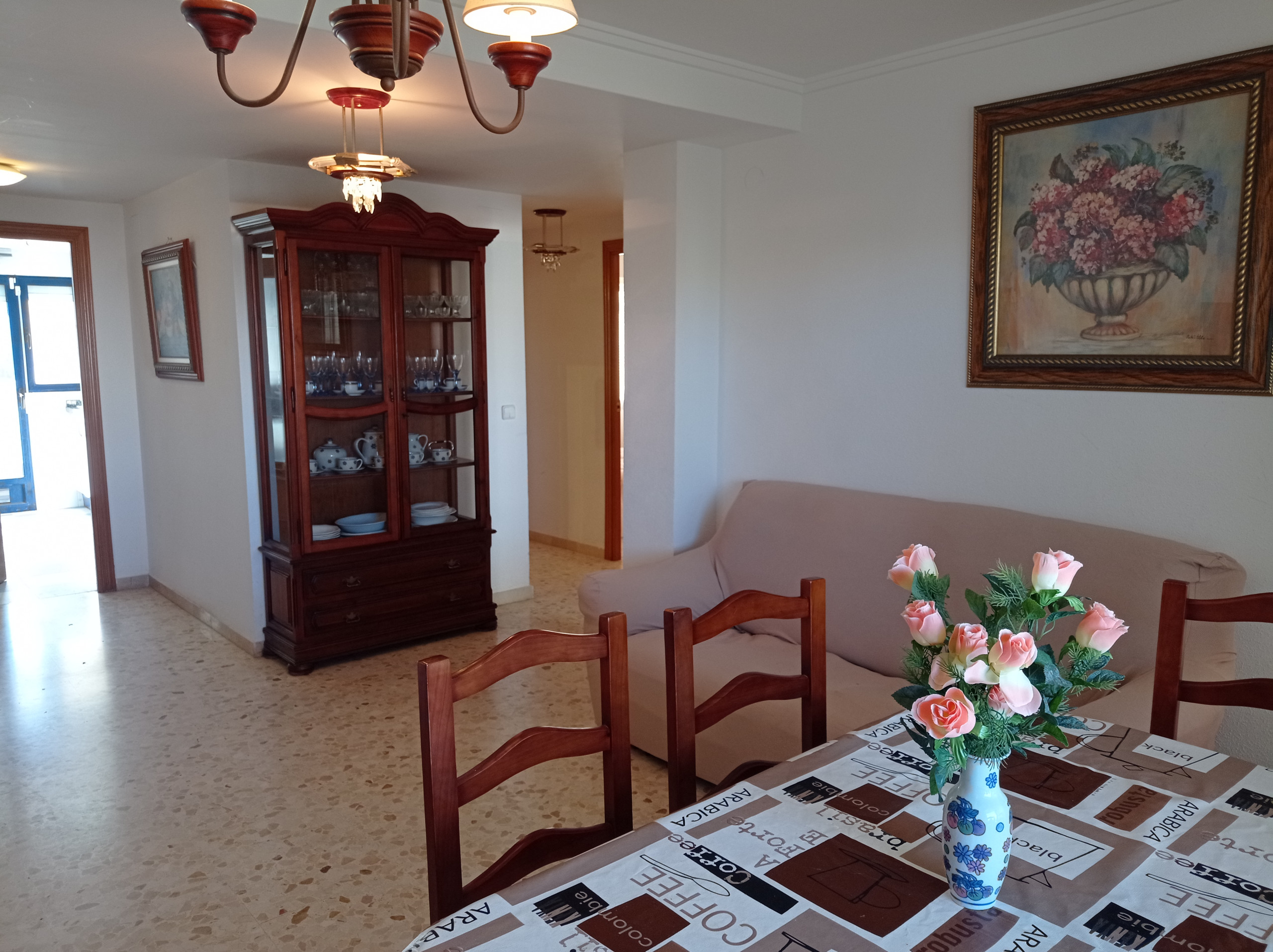 Cosy apartment on the second line of Gandía Beach, located in the ROMA V building, 2nd floor with lift. Offers three bedrooms, one double bed and three single beds. One bathroom with shower tray, large renovated kitchen, and living-dining room with access to a lovely east-facing terrace with awning. It has air conditioning in the living room and ceiling fans in the living room and three bedrooms. Includes parking space. It is located in the North area of Gandía Beach, residential zone, near all kinds of services, supermarkets, restaurants, etc...