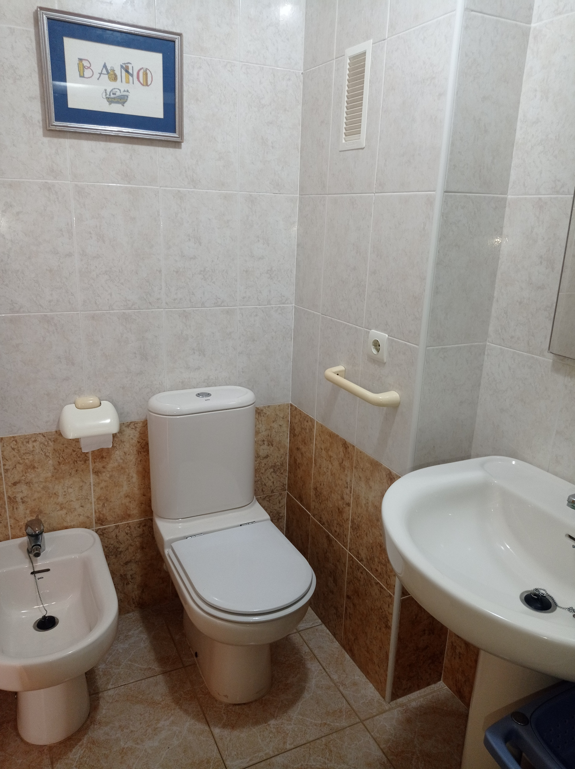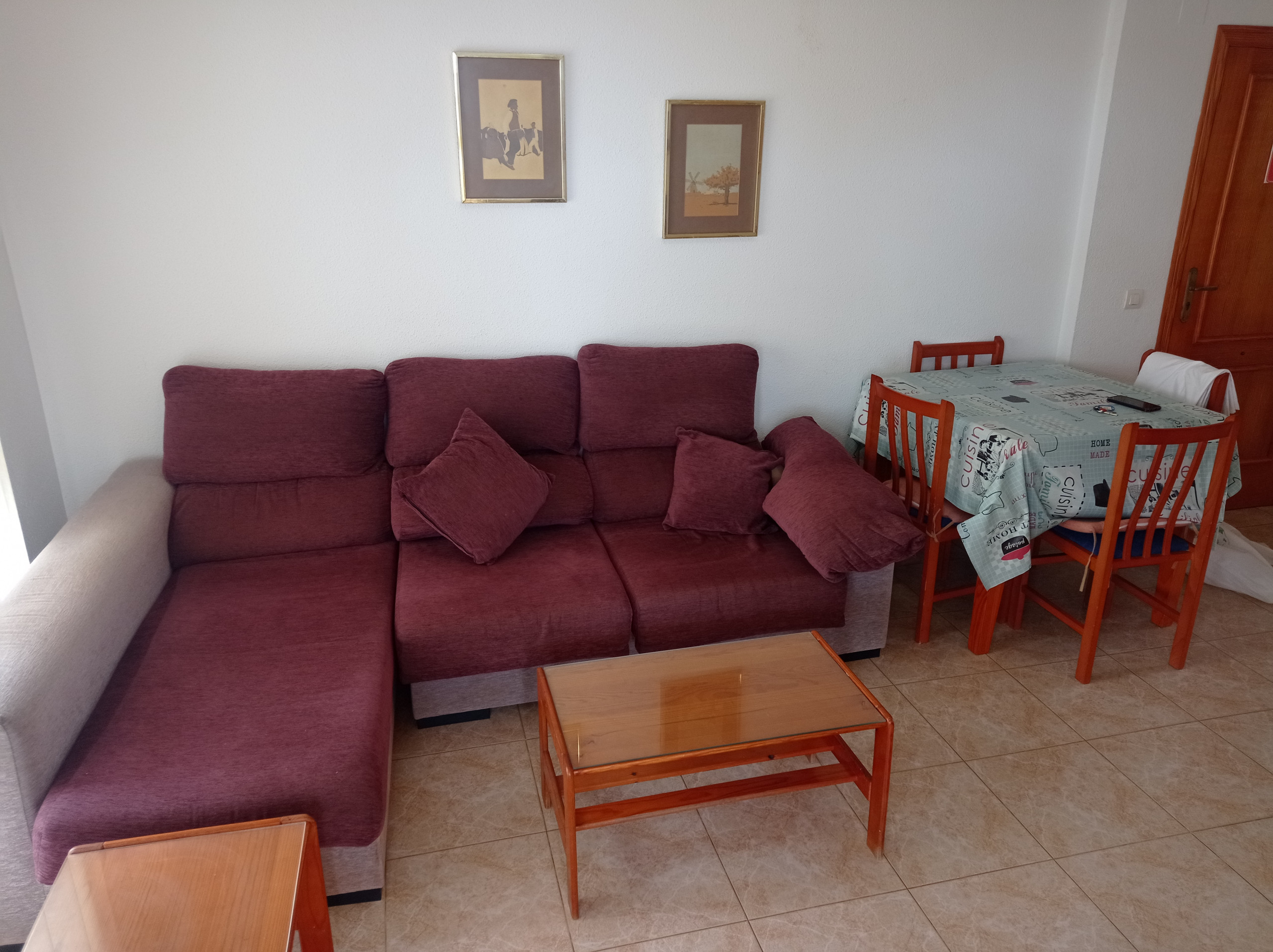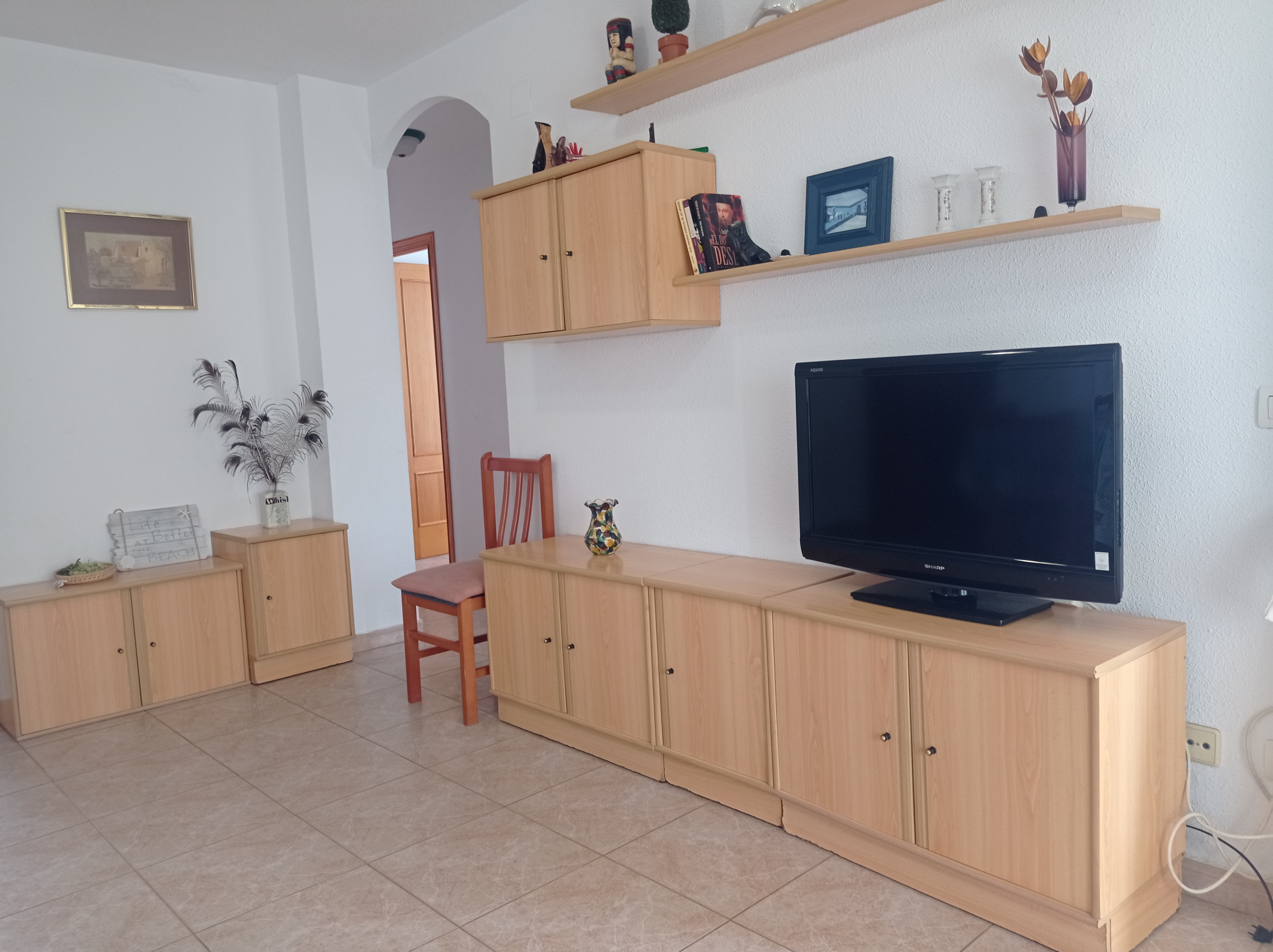 The apartment on the fourth floor has three double bedrooms, one complete bathroom with shower tray, independent kitchen and living room with access to a terrace (with awning) facing north on the side. Also a second terrace facing South with awning, accessible from the kitchen. Sea views from both terraces. Includes WIFI service. It has air conditioning in the living room and main bedroom, as well as fans in the secondary bedrooms.