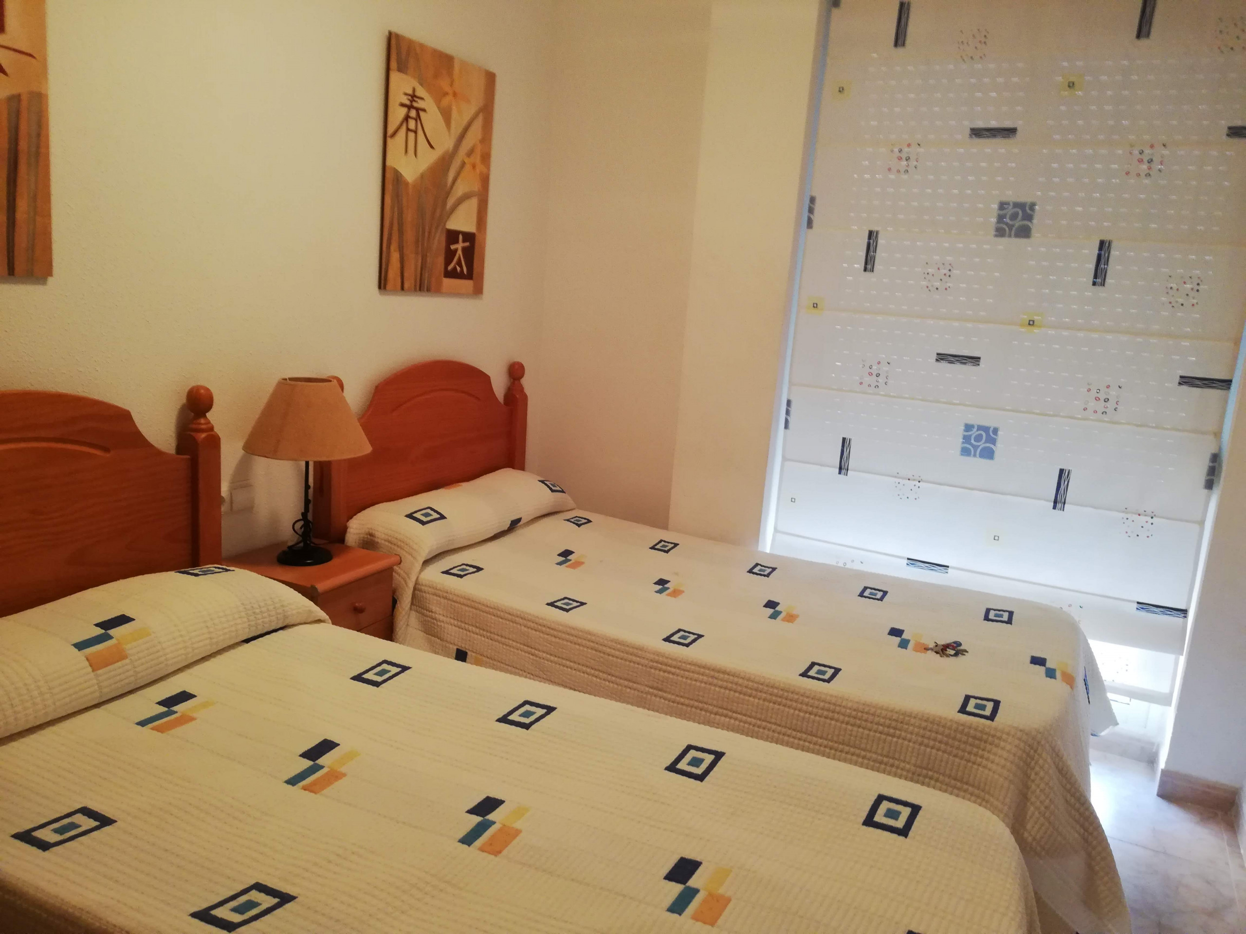 Apartamento con dos dormitorios, un baño, un aseo-ducha, cocina independiente con galería-lavadero y salón comedor con salida a amplia terraza de orientación Sur (con toldo) con vistas limitadas al mar, y buenas vistas a la piscina y a la montaña. Incluye plaza de garaje y servicio WIFI.