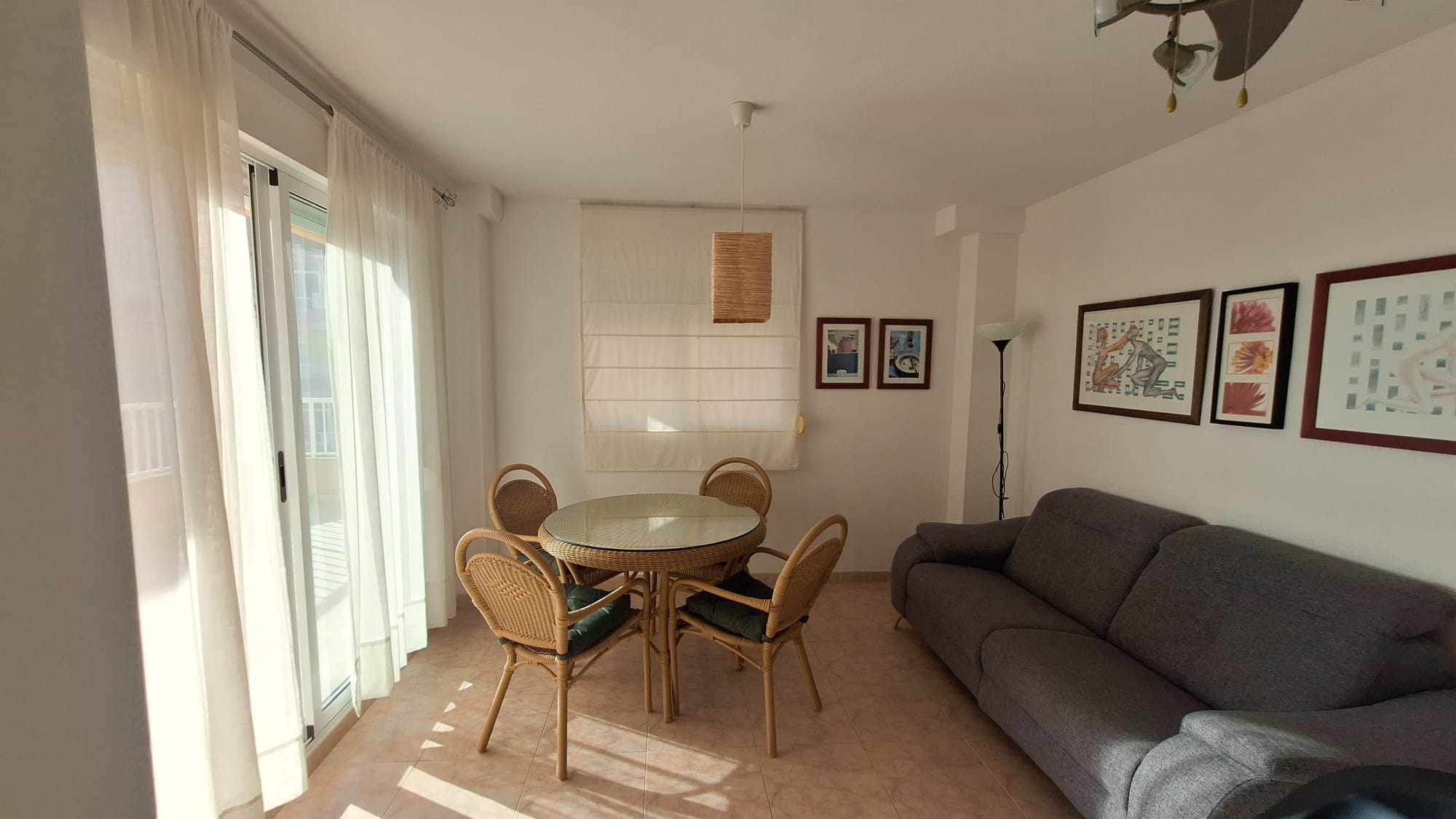 The apartment has a south-facing terrace with awnings. It has two double bedrooms, both with ceiling fans, one full bathroom, living-dining room, kitchen and laundry gallery with access to a private 20 m2 patio with barbecue and stone table/chairs. Additionally, next to the terrace with access from the living-dining room, there is a second chill-out terrace with furniture, ideal for enjoying during the nights. NO PETS ALLOWED. Capacity 4 people.