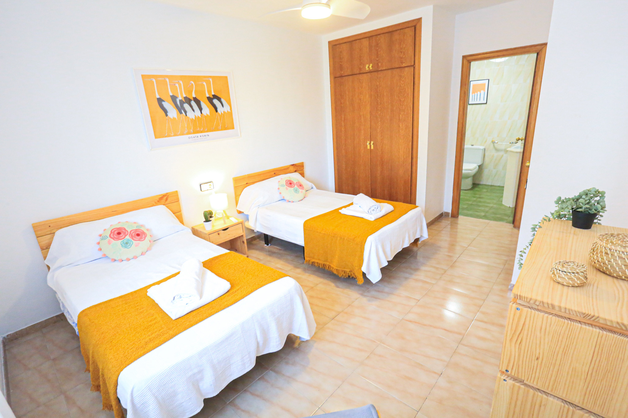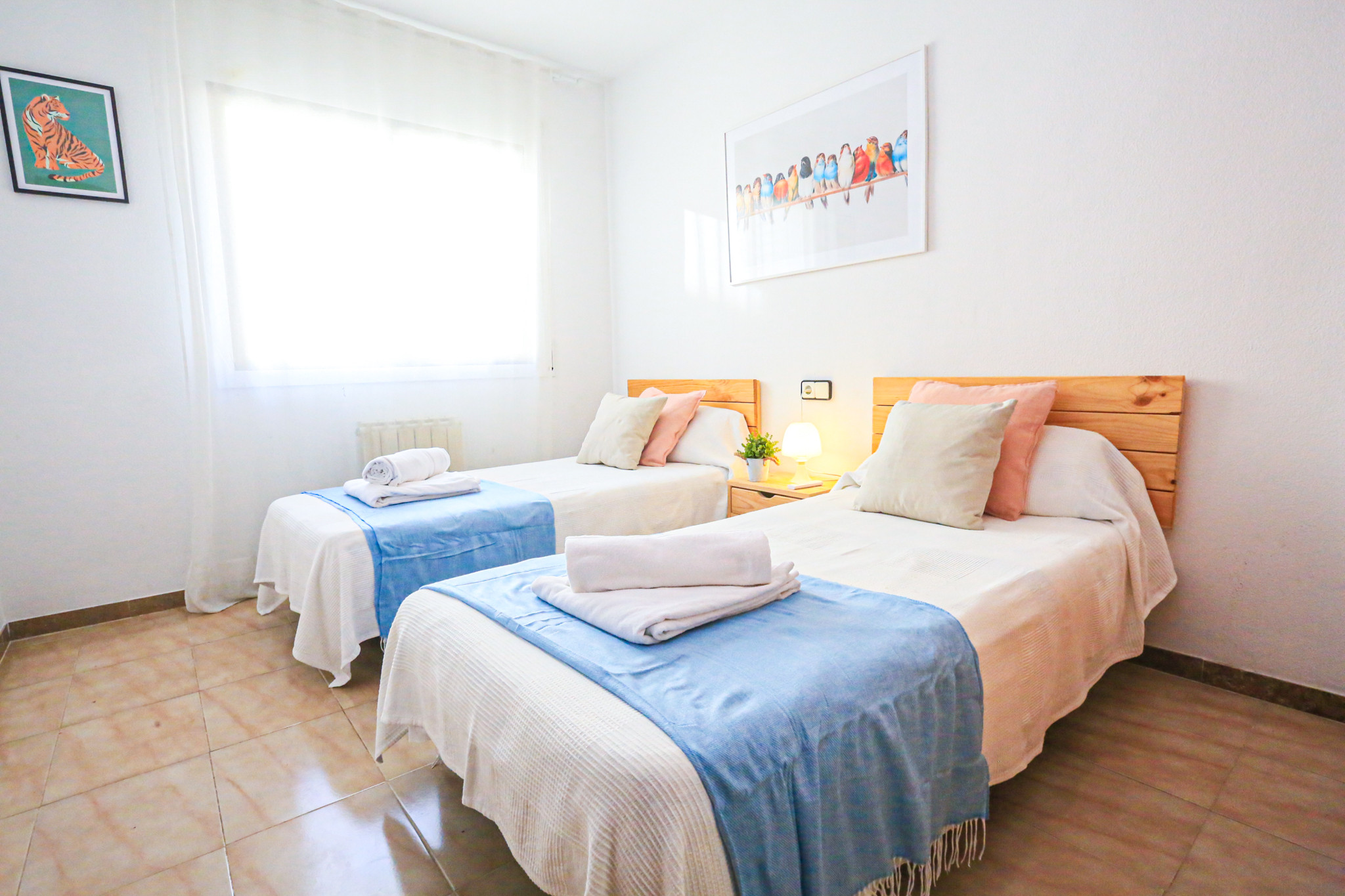 The apartment has 4 bedrooms that can accommodate up to 8 people, distributed with 1 double bed, 6 single beds and 1 extra bed. Ideal for large families who wish to enjoy their holidays together.