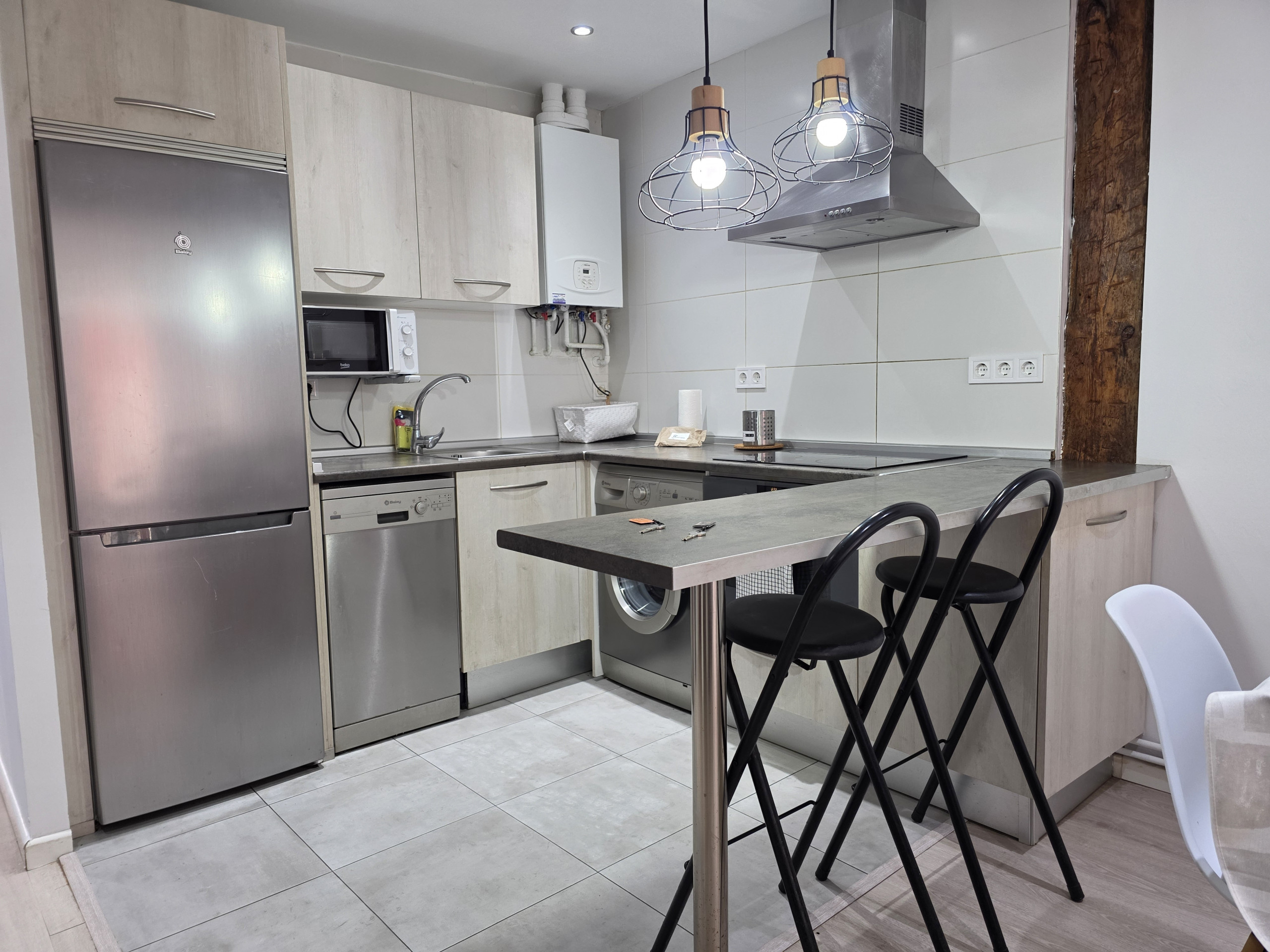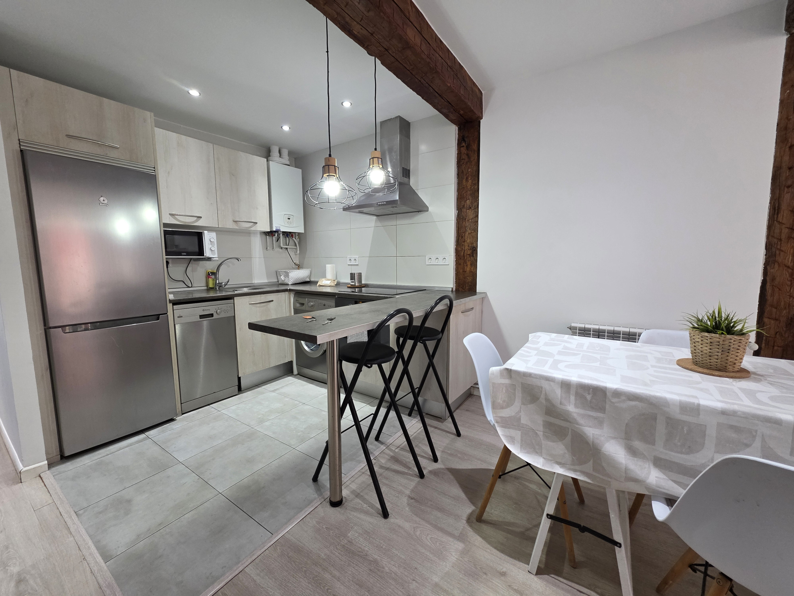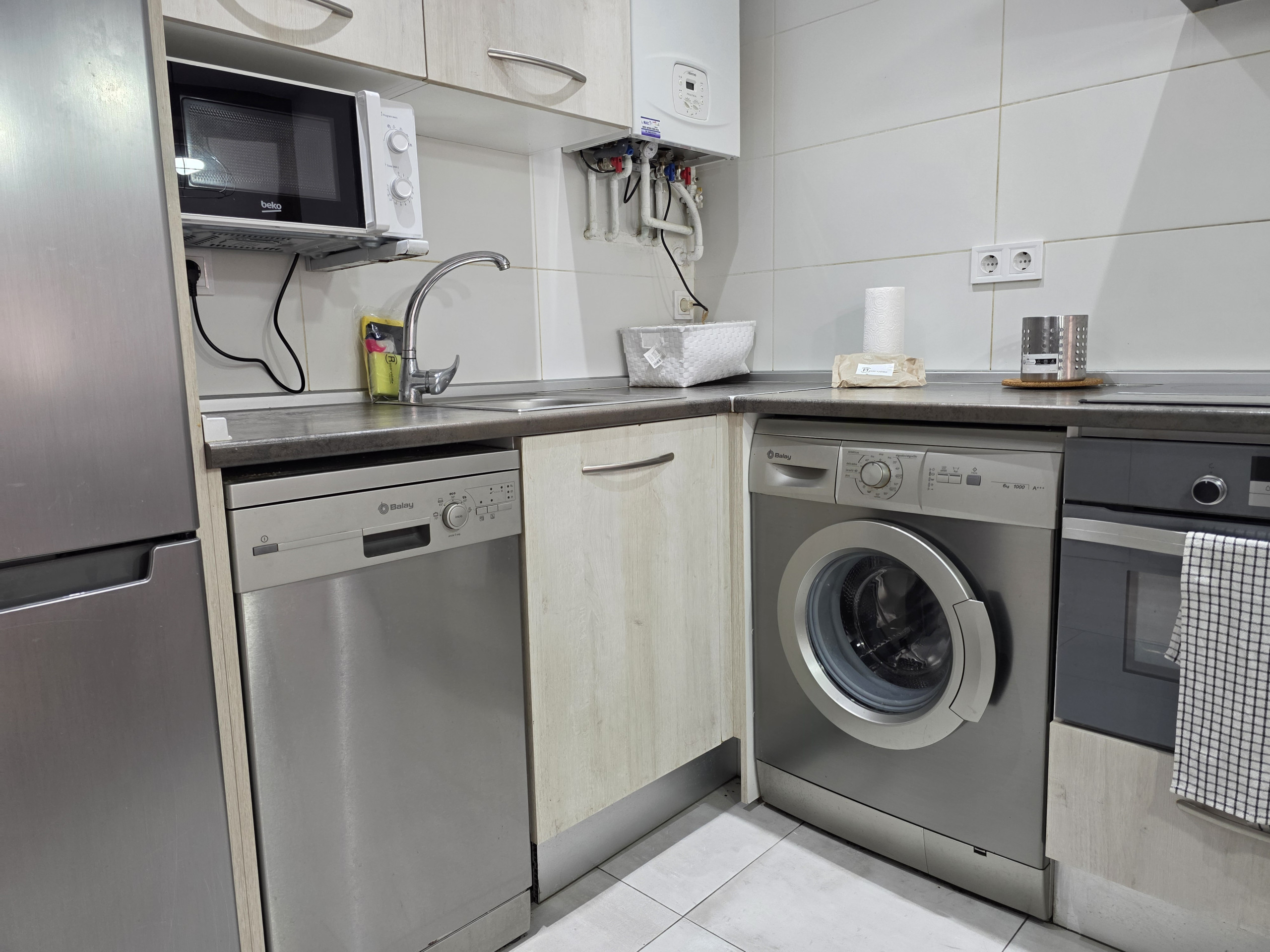 Cuenta con 3 dormitorios, baño con bañera, salón acogedor y cocina totalmente equipada con horno, microondas y lavavajillas. Espacios funcionales pensados para una estancia confortable.