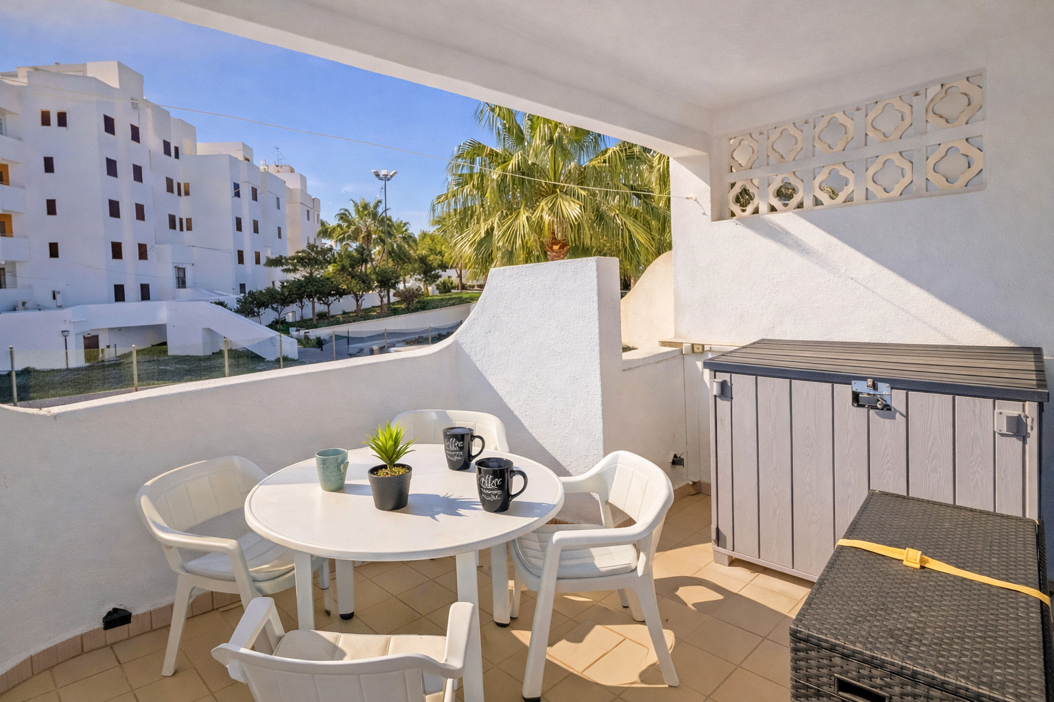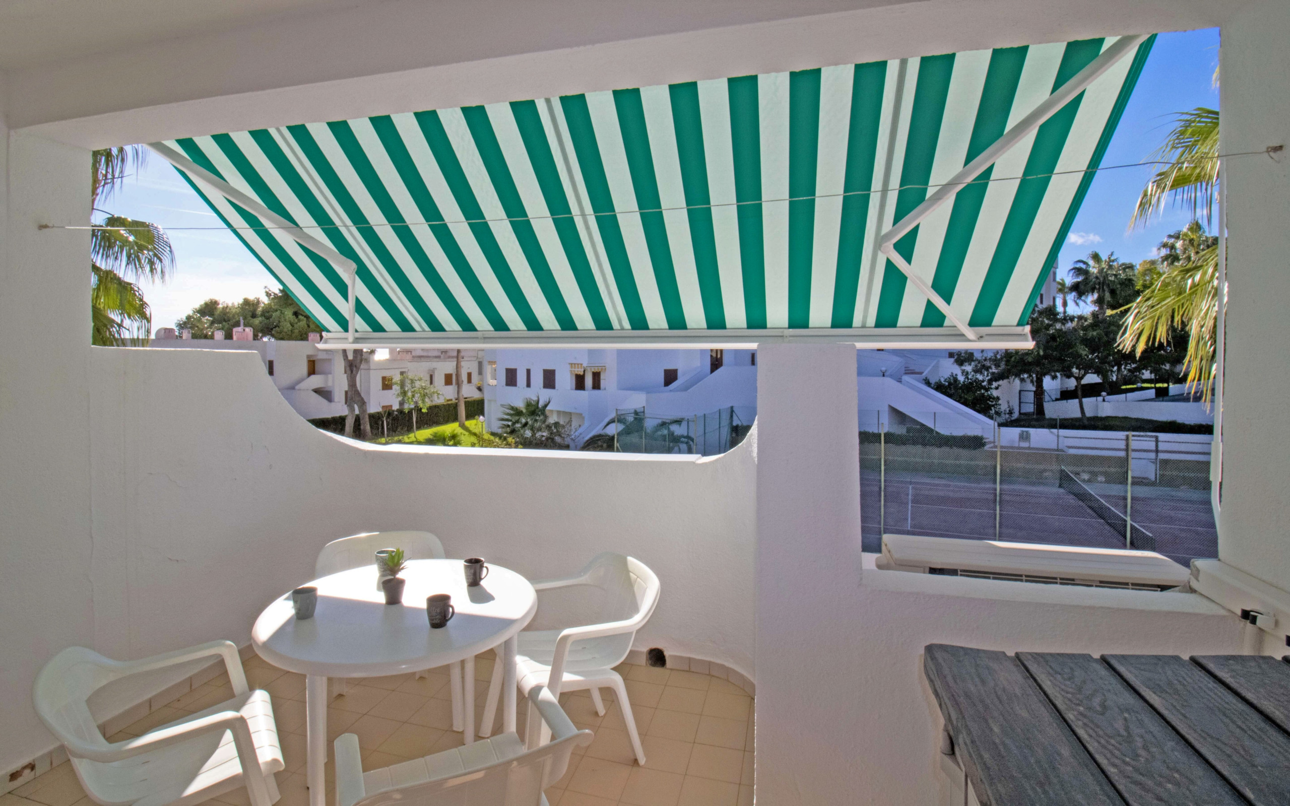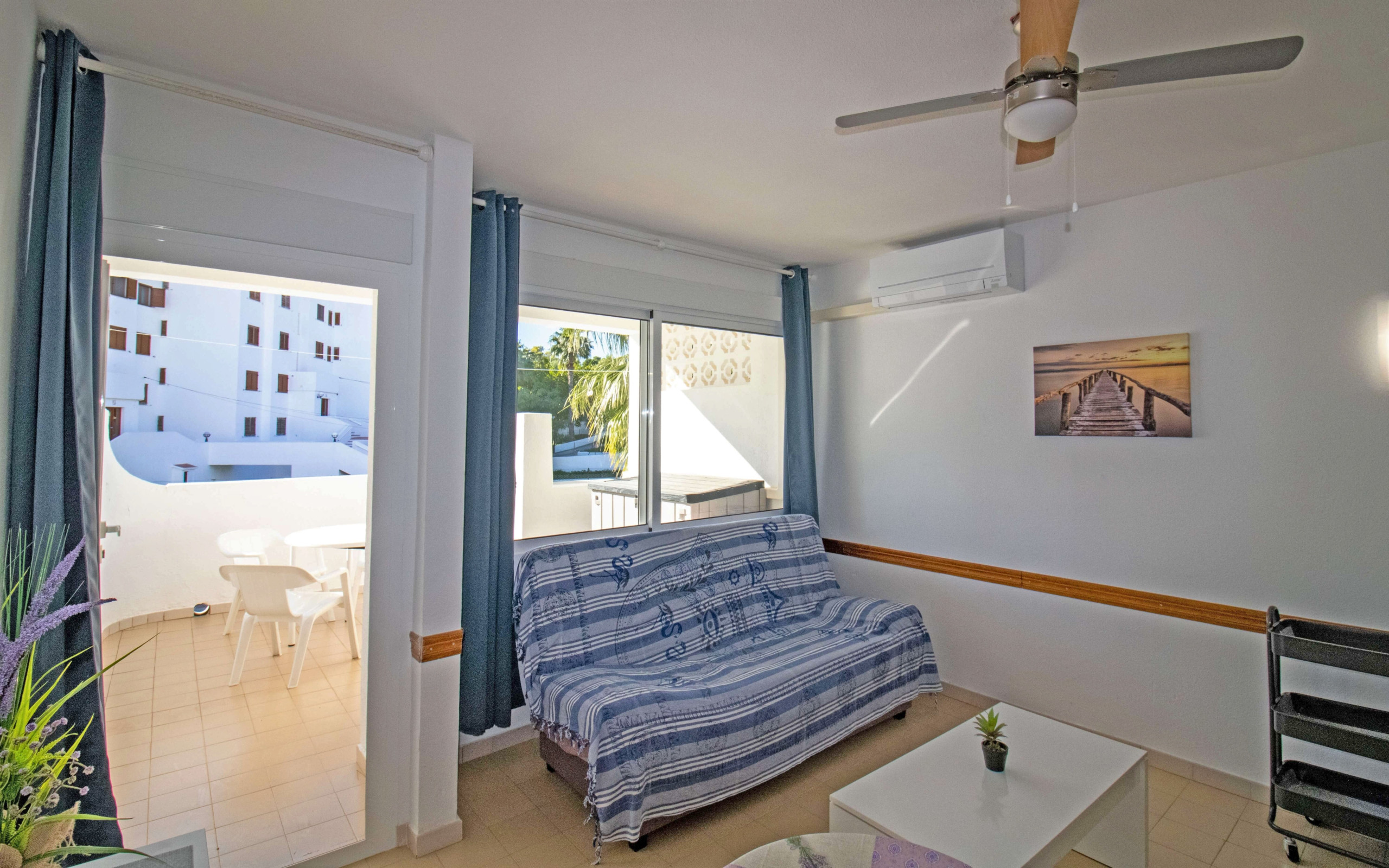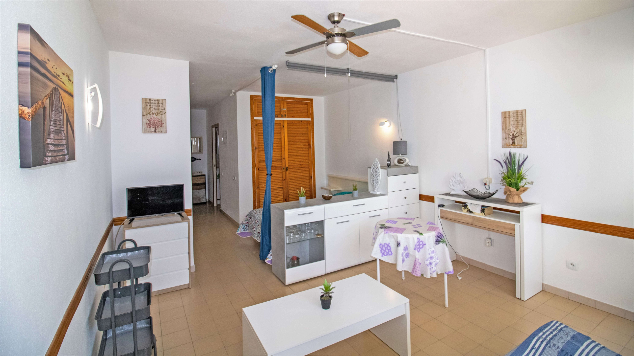 The studio has a terrace with beautiful views to the communal garden and palm trees, as well as partial sea views.