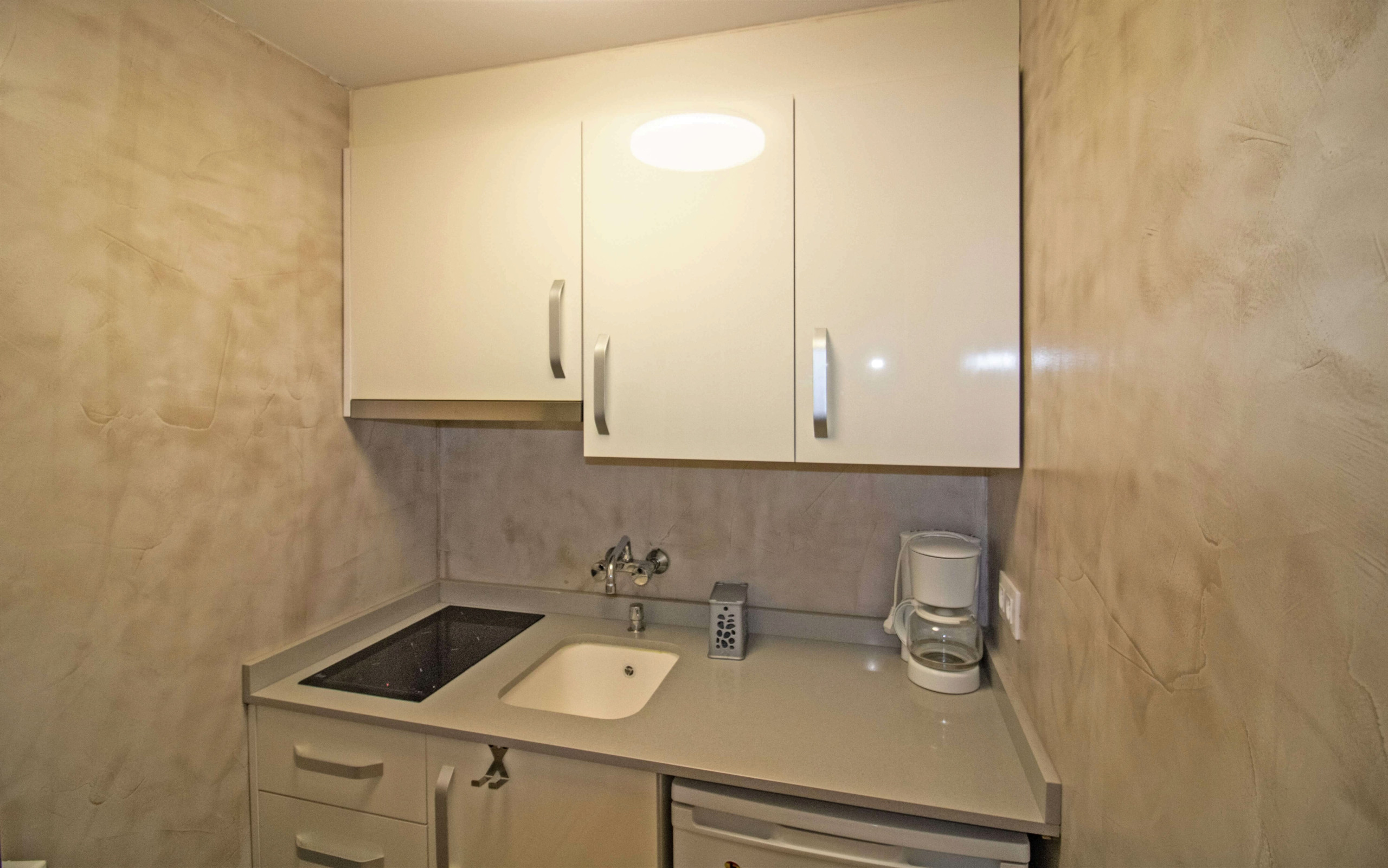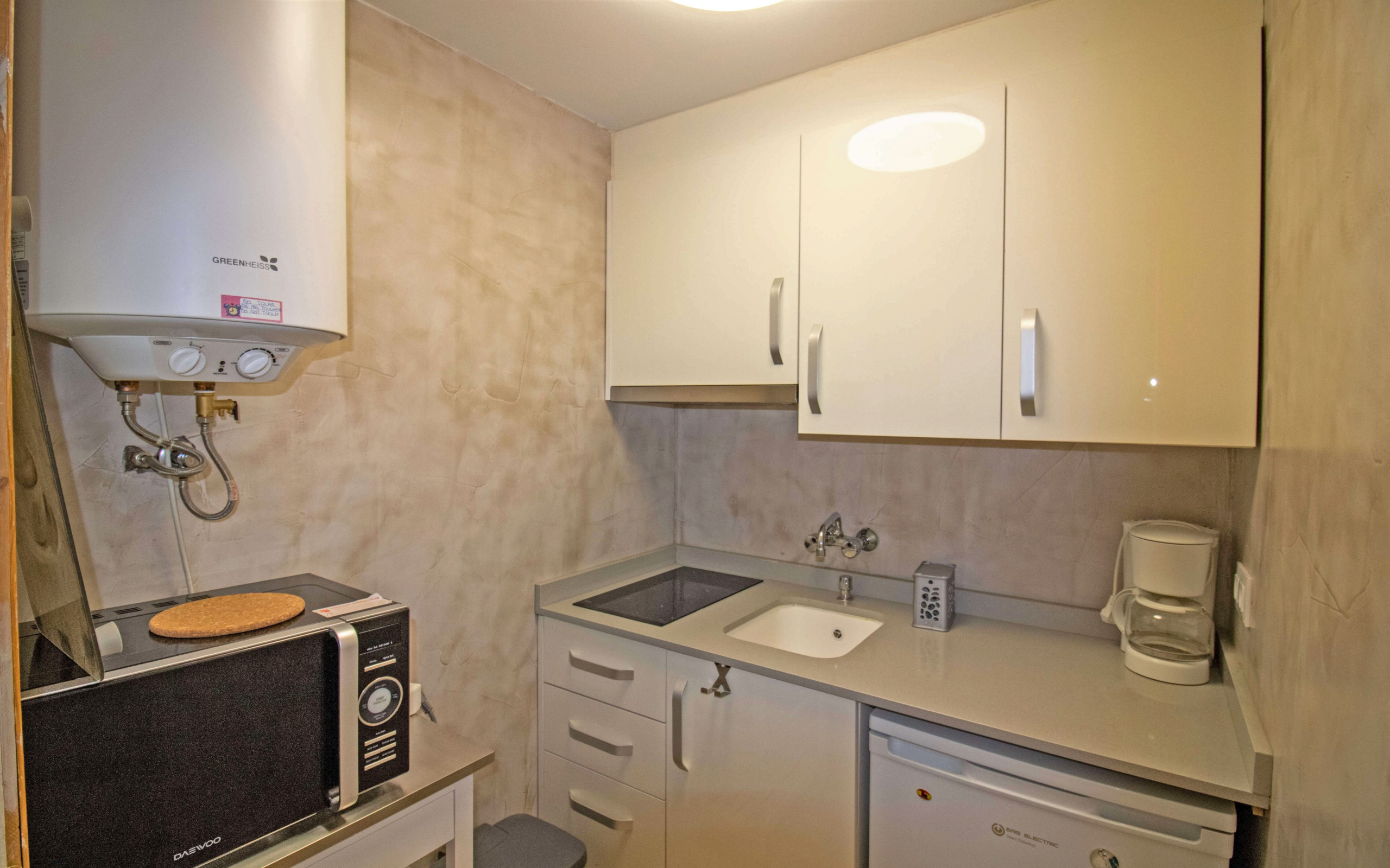 Studio for rent in Arcos II, just 250 metres from Las Fuentes beach. With maximum capacity for 4 people (if they are only adults, we recommend maximum 3), this small but cosy studio of 45 M2 is distributed in an independent kitchen with ceramic hob, a living-dining room with a double sofa-bed, a double bed, a bathroom with bathtub, and a large terrace facing south.