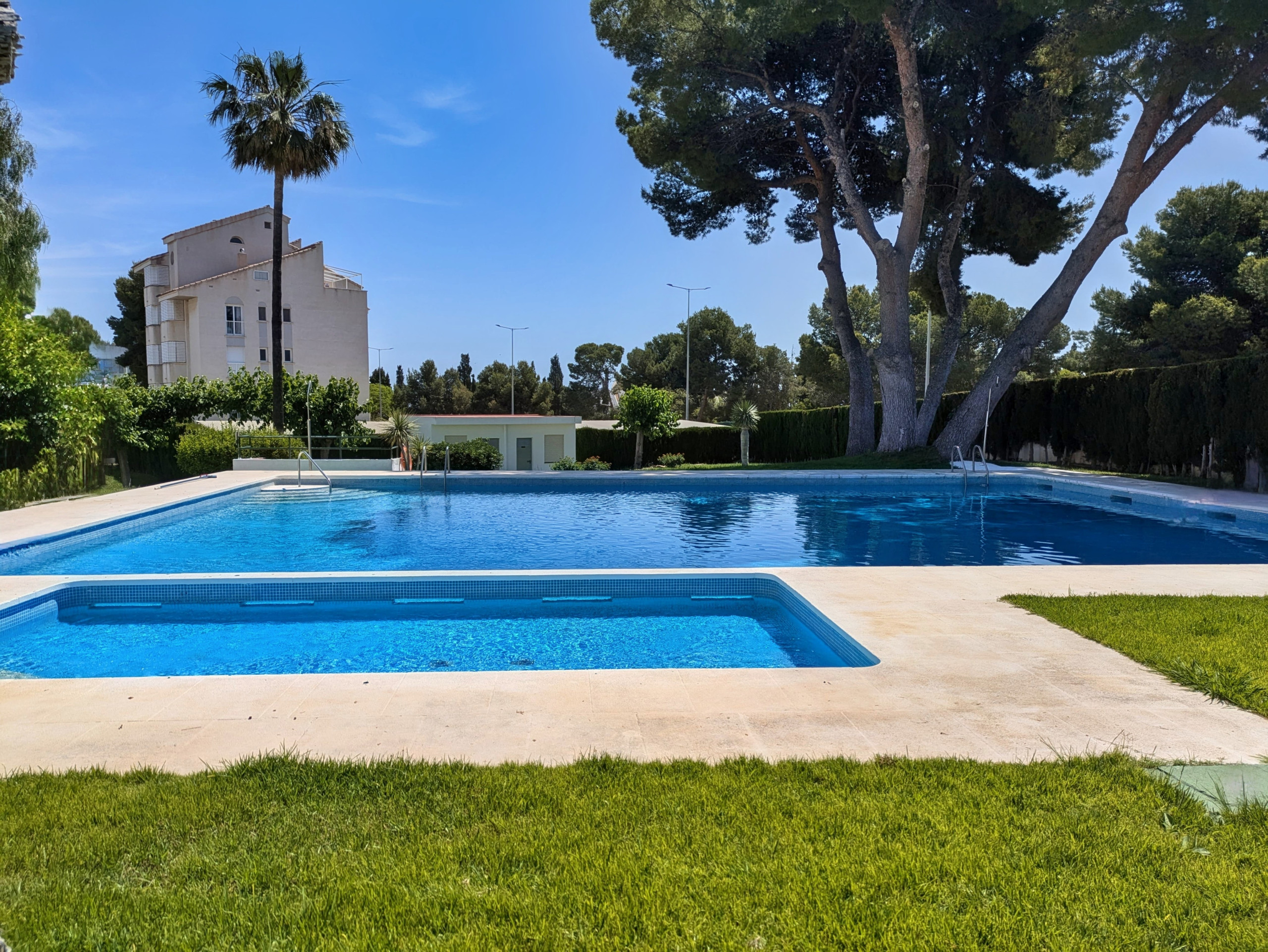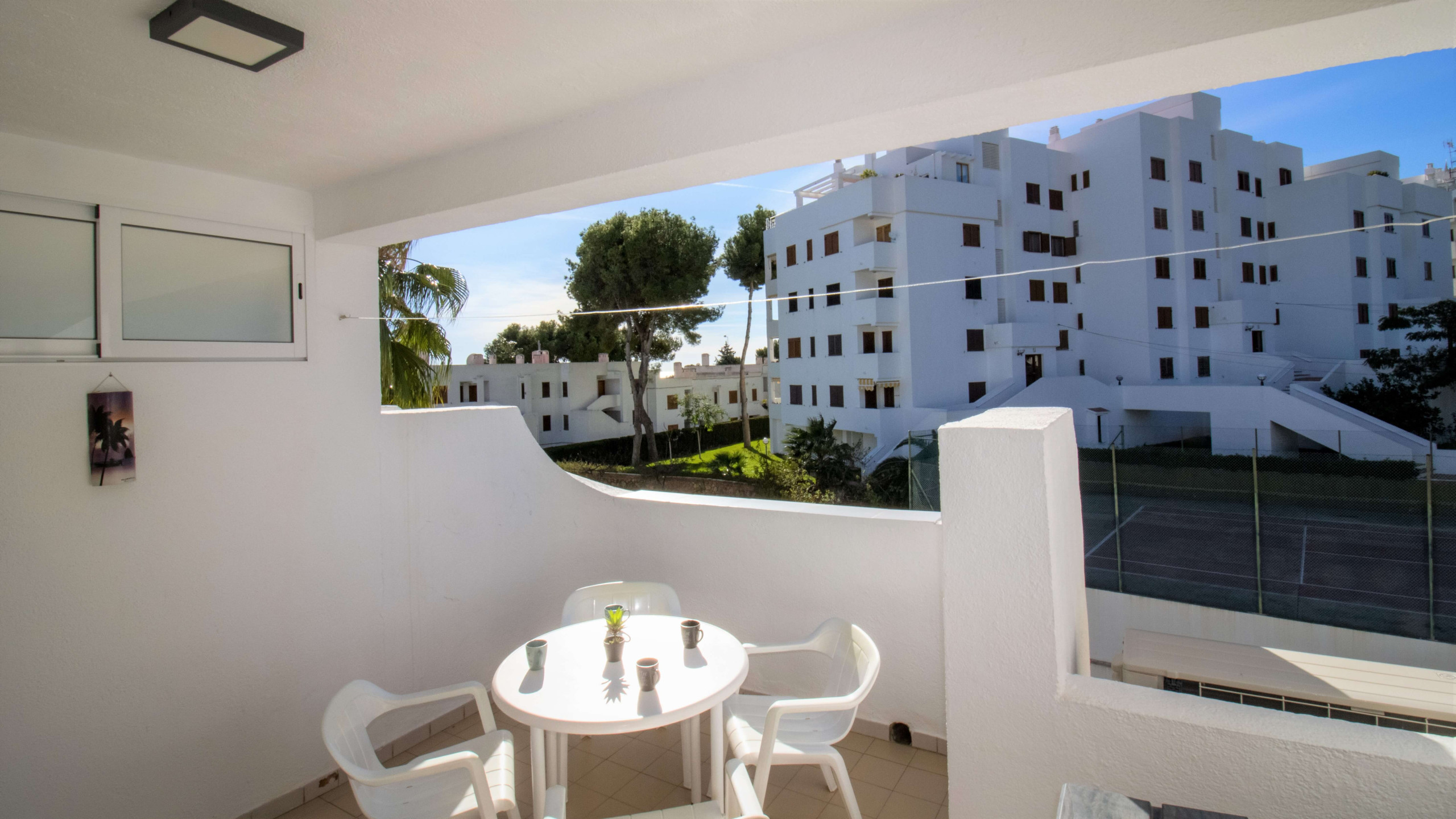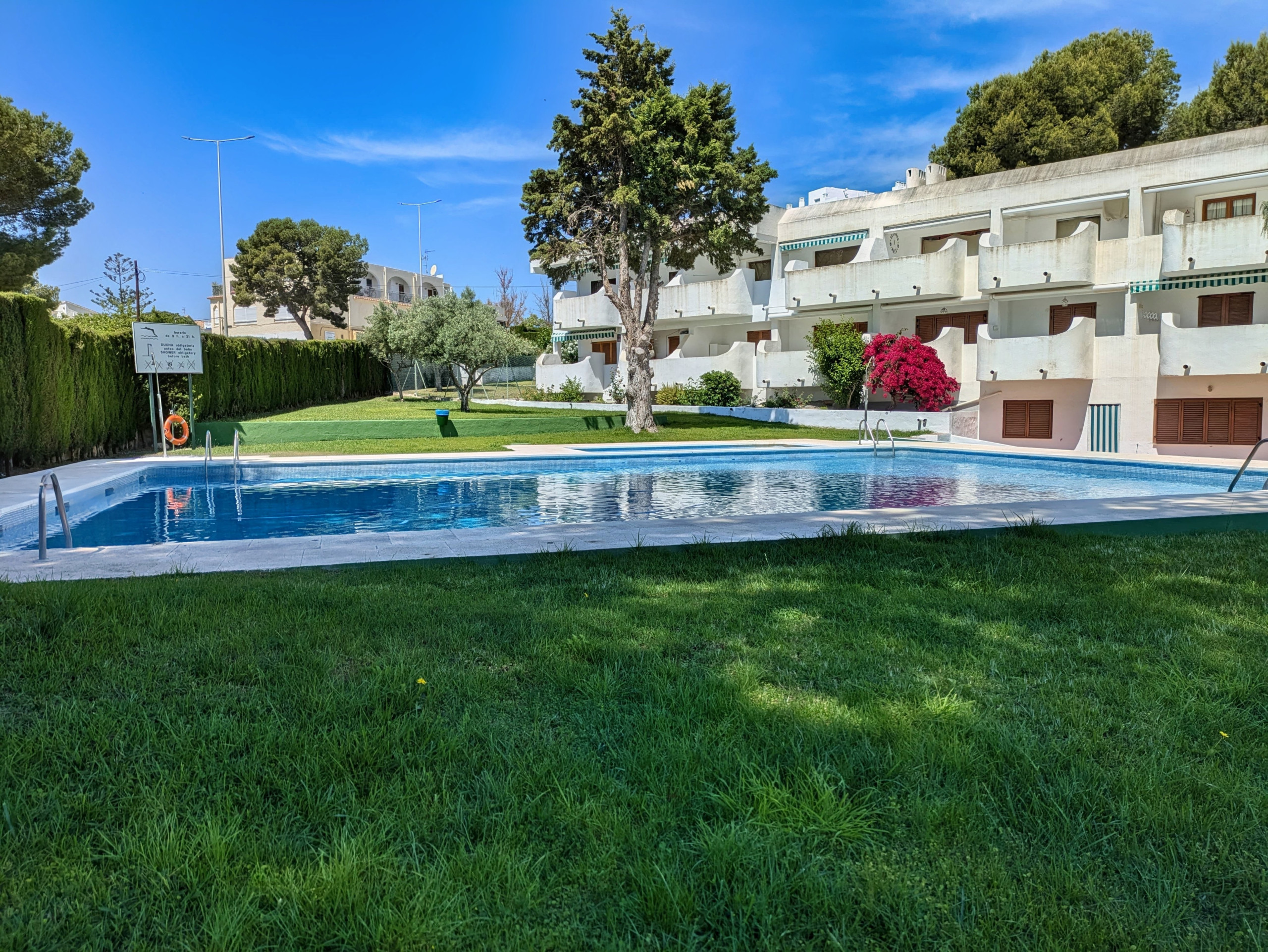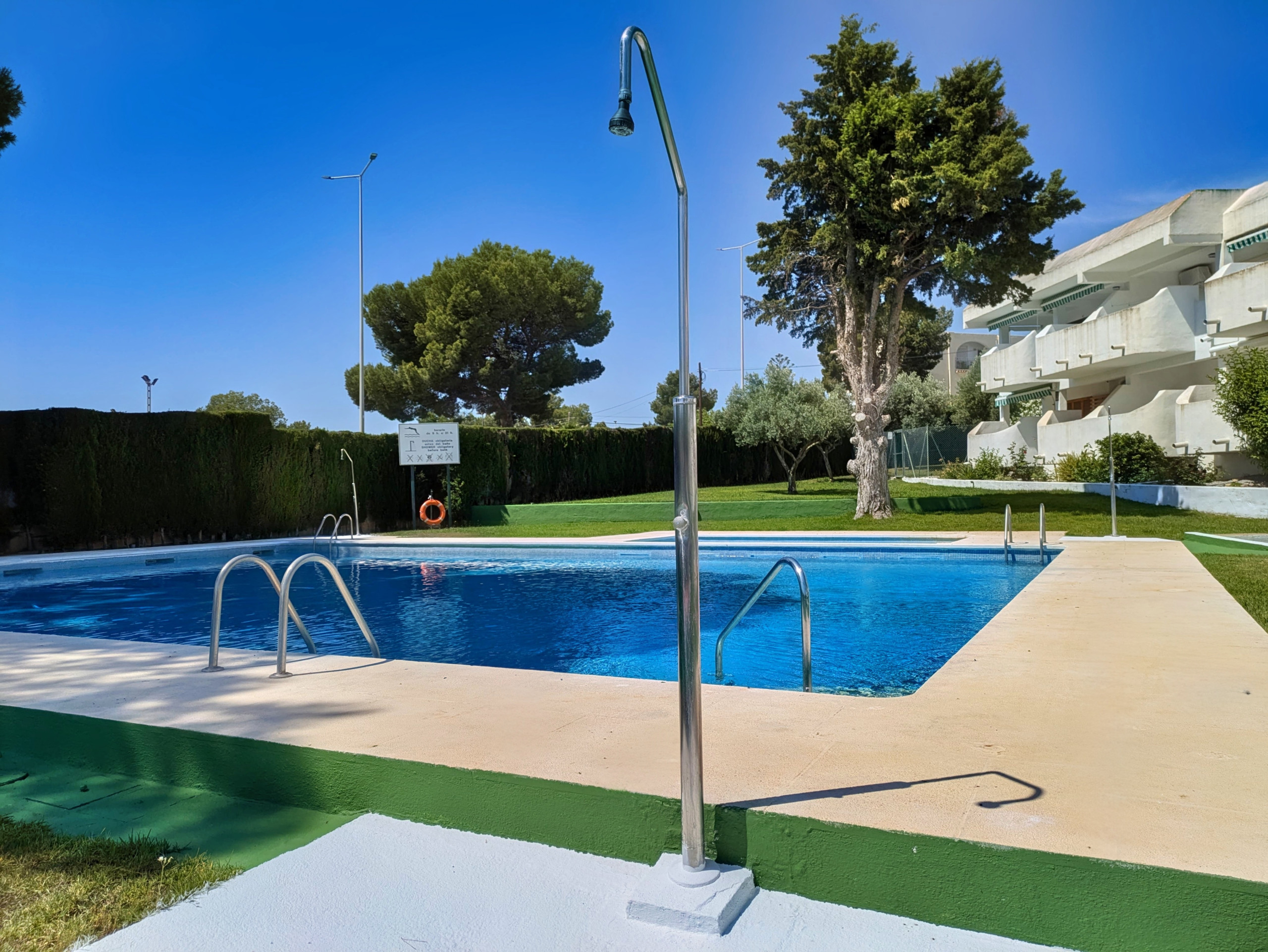 The urbanisation Tres Carabelas has an excellent location, with the port and Las Fuentes beach a 2 minute walk away, and the town centre just over a 10 minute walk. It has a communal swimming pool as well as a large garden area for sunbathing.