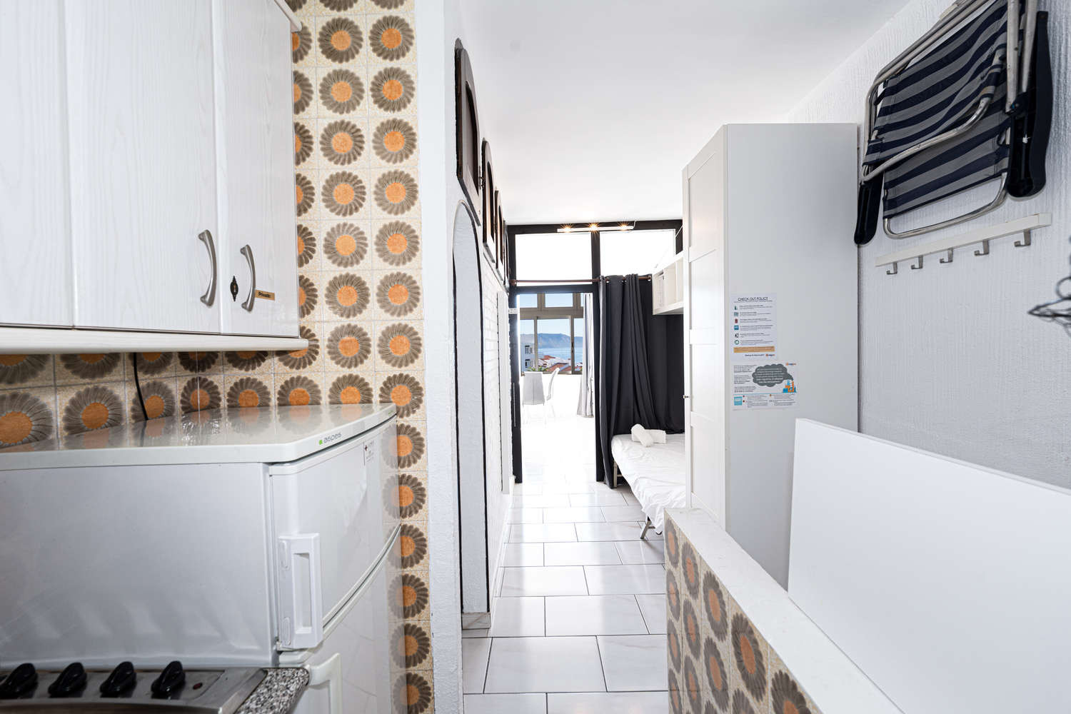 Open the curtains and the blue of the sea floods the living room. Natural light sets the pace of the day in this accommodation, where the routine consists of deciding whether to go down to the swimming pool or walk two minutes to Carabeillo beach. Being right in the centre but facing the sea, a car is unnecessary: everything you need for a relaxing holiday is just a few steps away. Carabeo 45 is the perfect balance between the practicality of a city apartment and the calm of a beach retreat.The Property: 45 m² apartment optimised for comfort. It has a separate master bedroom, ensuring privacy from the living room. The layout can accommodate up to 3 people, with an additional bed available. Fully equipped kitchen and full bathroom with shower.