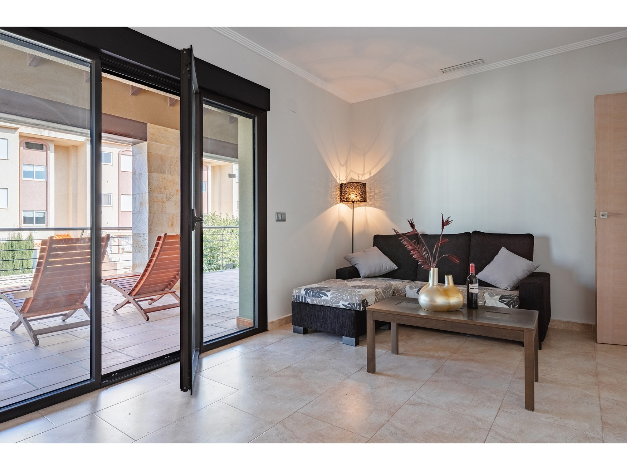 The interior is distributed over 2 floors, the ground floor has a living-dining room with an open kitchen, 2 bedrooms and 1 bathroom. It has air conditioning in the living room and ceiling fans in the bedrooms.
