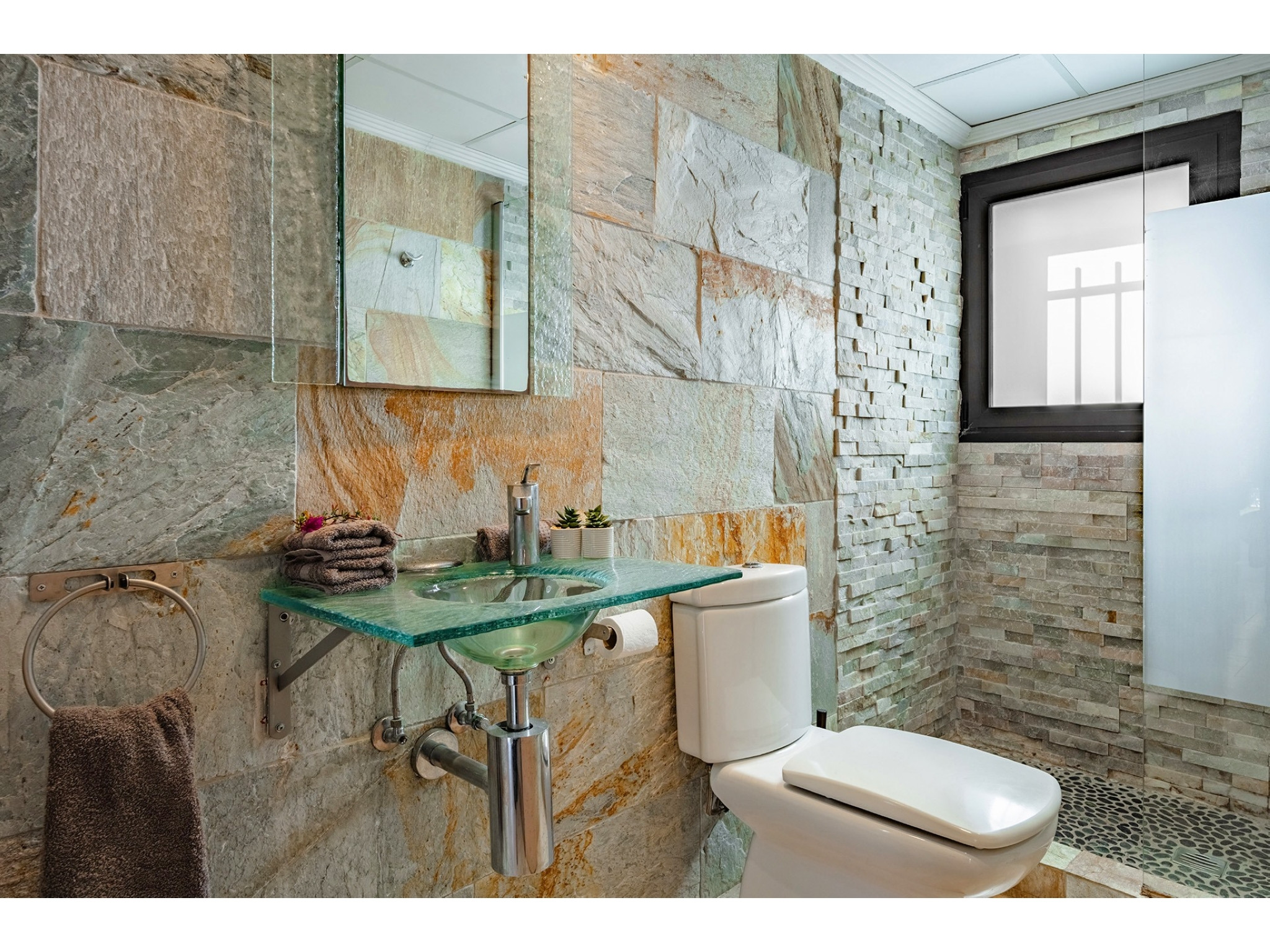 On the upper floor, 2 bedrooms (one with a double bed and the other with 2 single beds), with private terrace, as well as a bathroom with a shower.