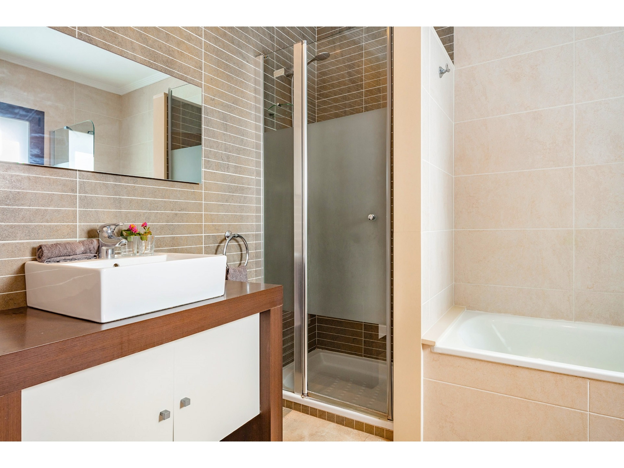 Villa Amanda consists of two levels, on the ground floor we find a spacious living room with direct access to the garden, a spectacular fully equipped kitchen, two bedrooms and two bathrooms (one of them en suite). The upper floor has three bedrooms and three bathrooms (including 2 en suite). One of these bedrooms is characterized by its size, it houses a round bathtub and a shower and from there you access a large terrace with beautiful views.