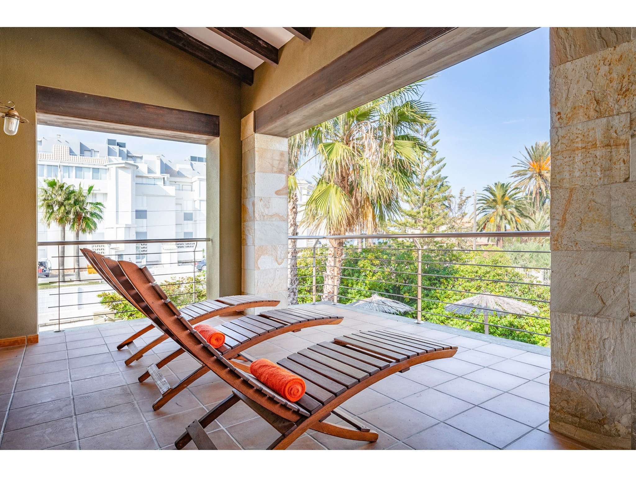 The exterior has a covered terrace with garden furniture and a large area by the pool to lie down and enjoy the sun, the pool and the barbecue.